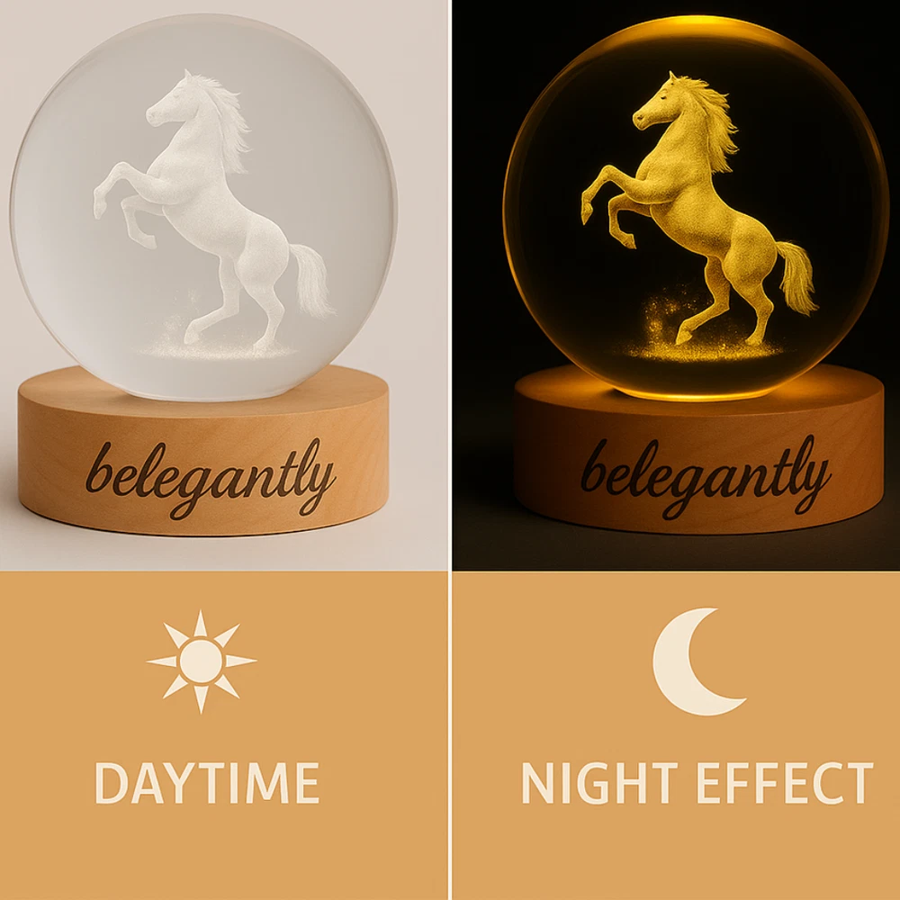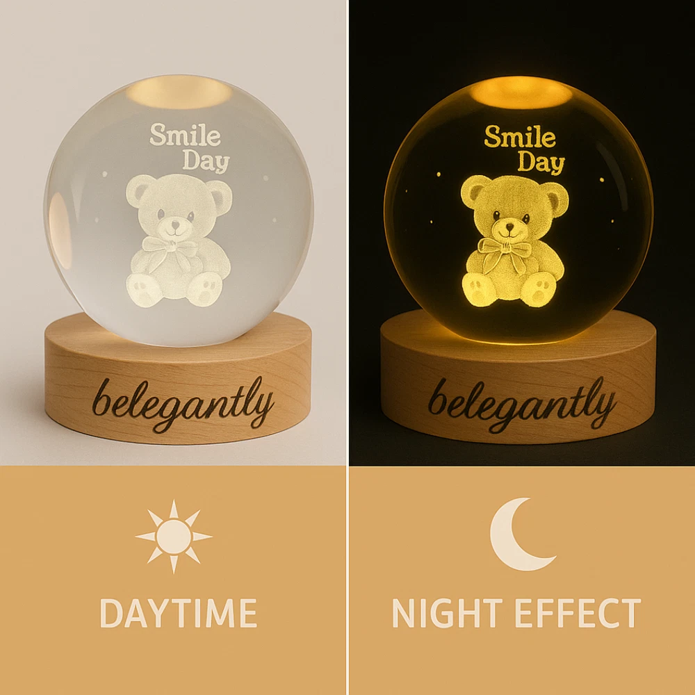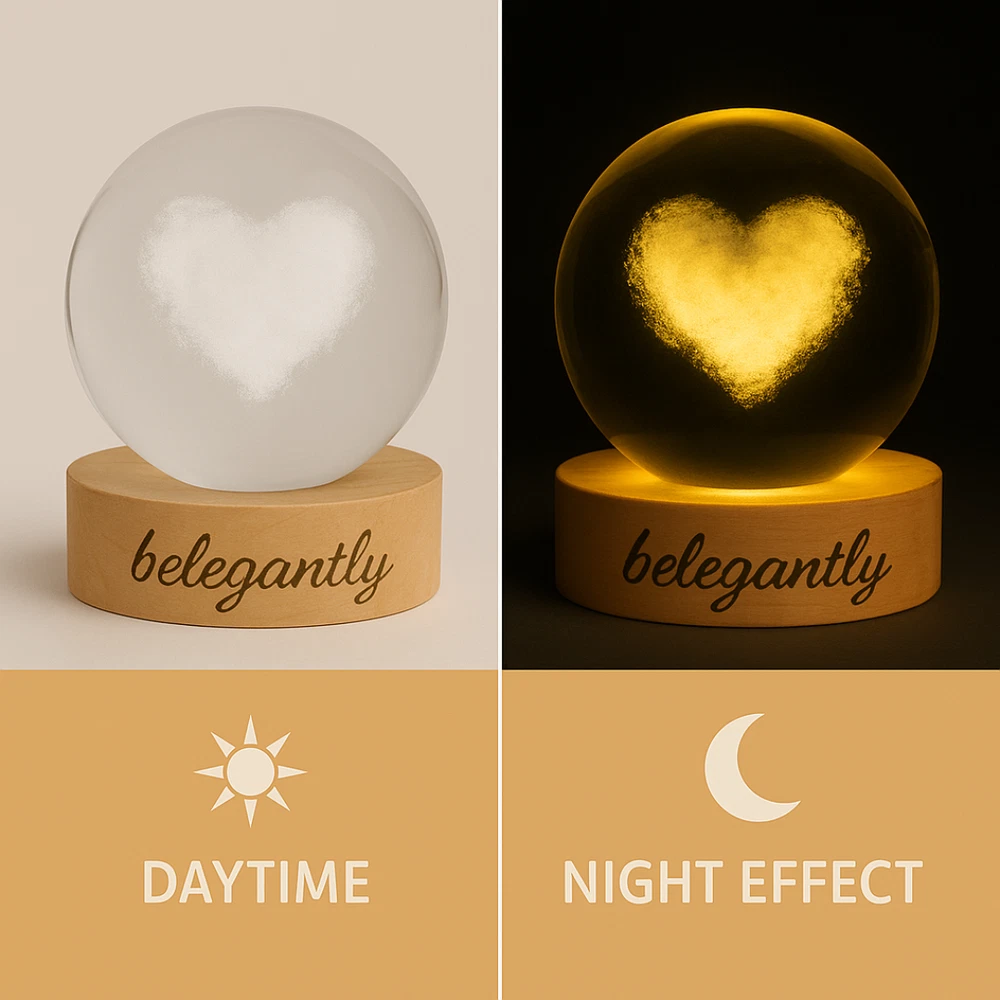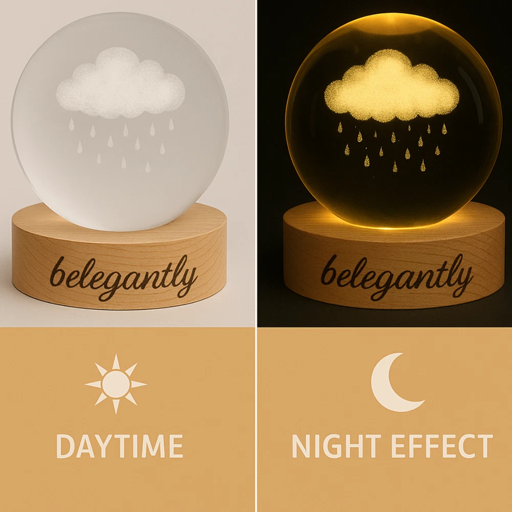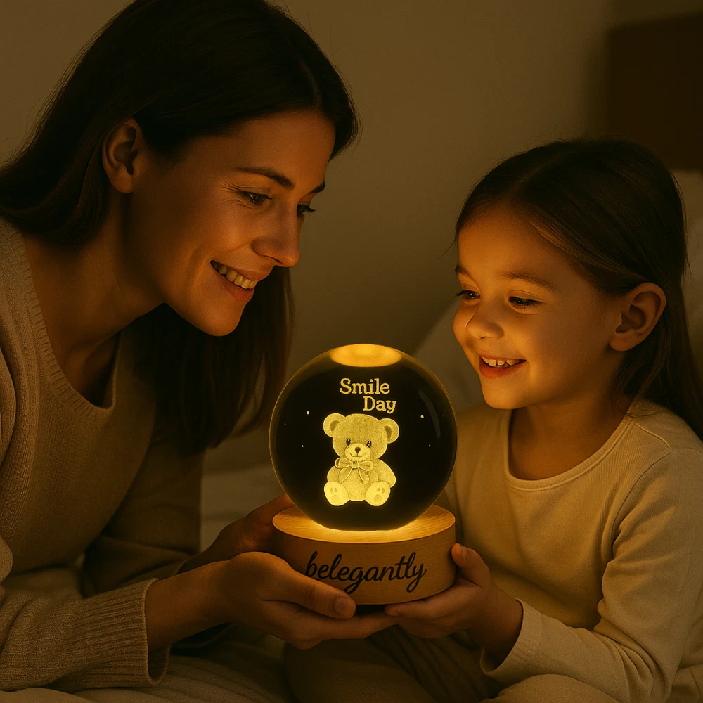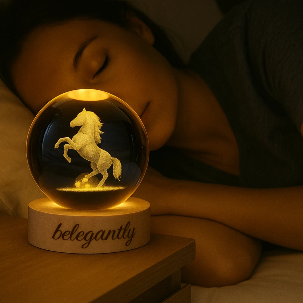 Belegantly™ 3D Crystal Ball Lamp – Galaxy, Moon & Planet Projection Embrace the beauty of the cosmos with the Belegantly-designed 3D Crystal Ball Lamp — a luxurious fusion of art and light. Featuring a mesmerizing galaxy, moon, and planet projection, this crystal lamp transforms any space into a celestial sanctuary. Crafted from premium-quality crystal , this lamp offers both elegance and durability. Its compact design and USB-powered base make it effortless to set up on desks, nightstands, or shelves. Whether you're creating a peaceful atmosphere for sleep or adding a stylish touch to your workspace, the soft glow and intricate design offer a serene and sophisticated ambiance . ✨ Key Features: 3D Laser-Etched Galaxy Design – Moon, planets, and stars in stunning detail Elegant Crystal Craftsmanship – Luxurious and durable design Soft Ambient Lighting – Ideal for relaxation, focus, or decor USB Powered – Convenient and energy-efficient Perfect for Home or Office – A statement piece for any setting Bring the universe into your home with the Belegantly™ Crystal Ball Lamp – where style meets starlight.