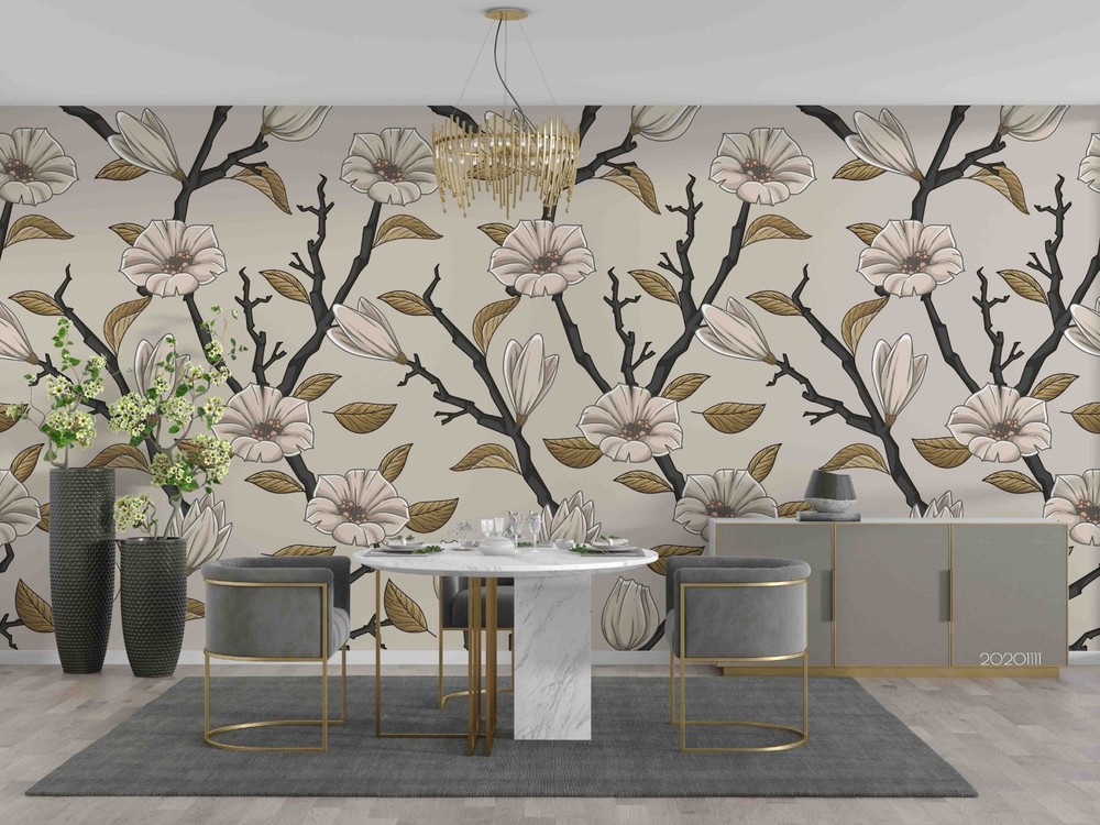 $ 15.013D Plants Flowers Leaves Pattern Wall Murals Wallpaper Murals Wall Sticker