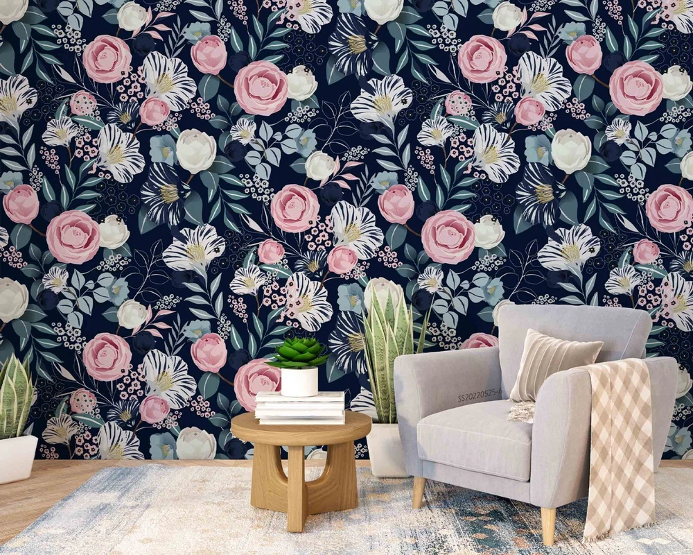 $ 14.753D Flowers Leaves Watercolor Pattern Wall Murals Wallpaper Murals Wall Sticker