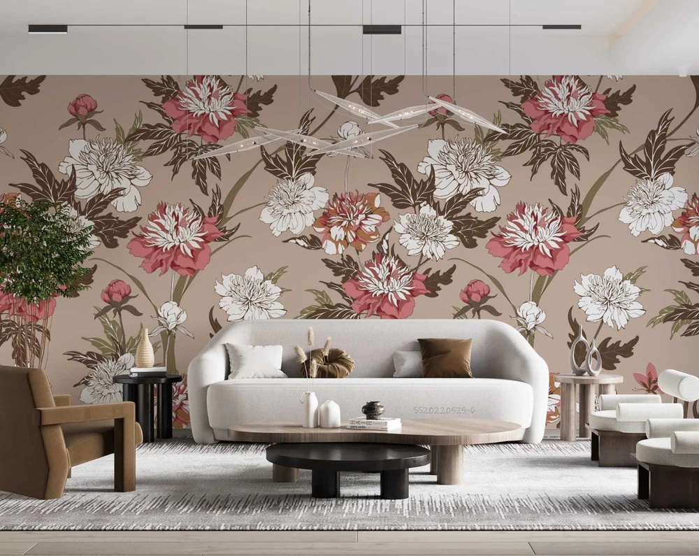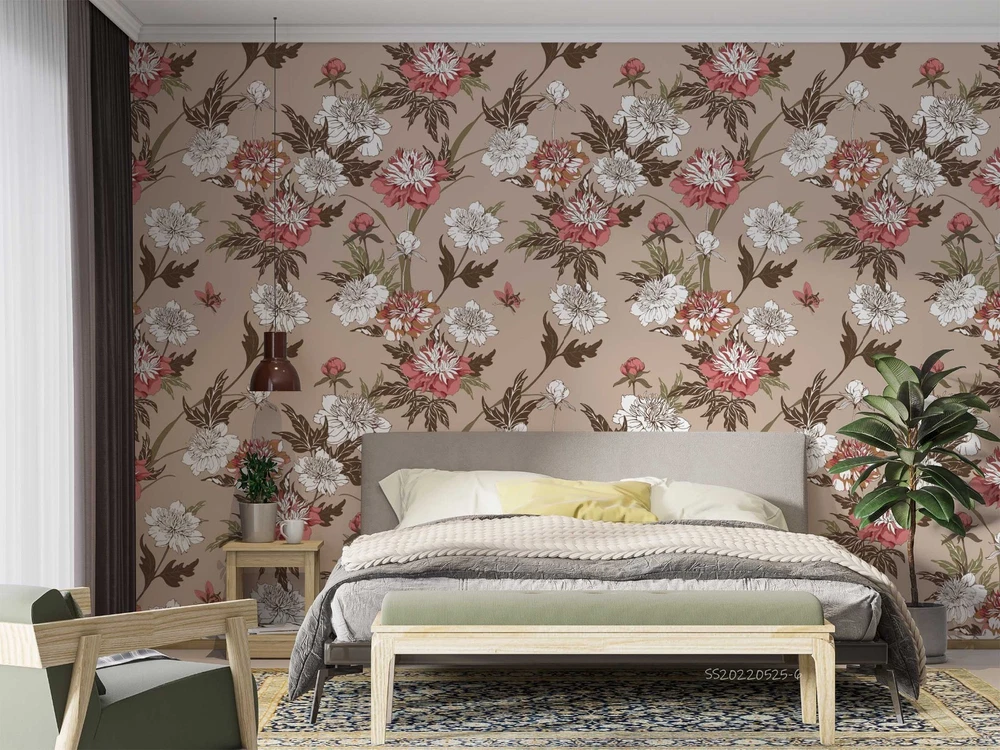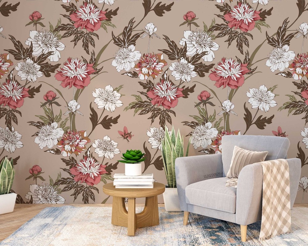 $ 14.753D Red Flowers Flora Pattern Wall Murals Wallpaper Murals Wall Sticker