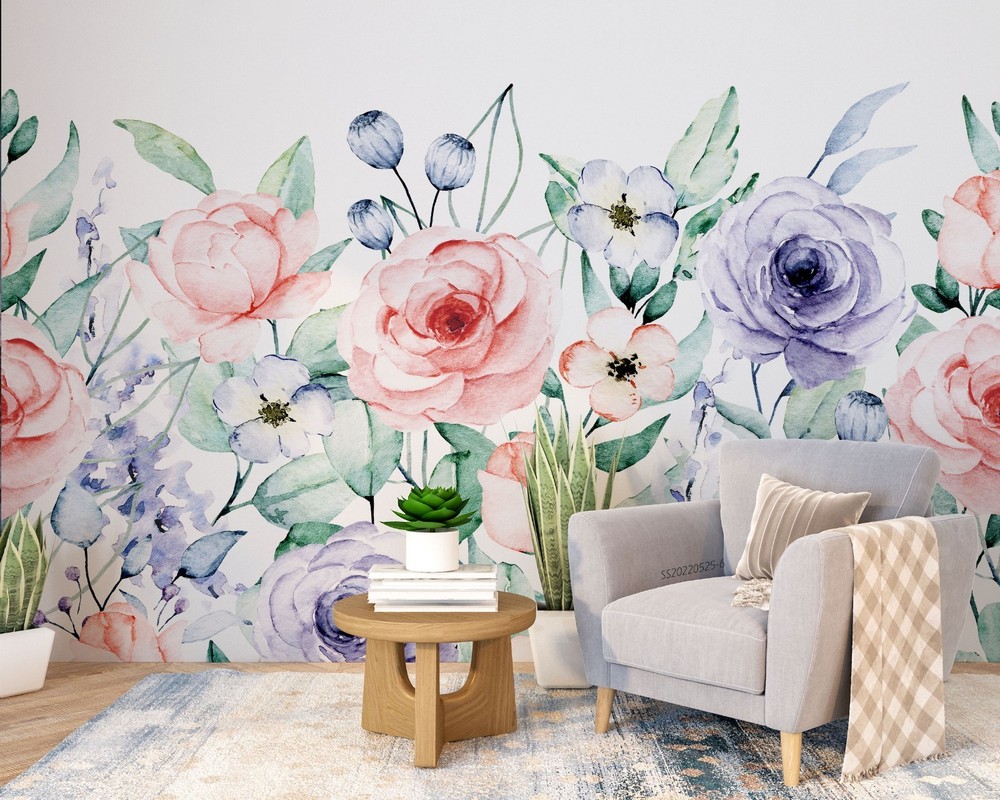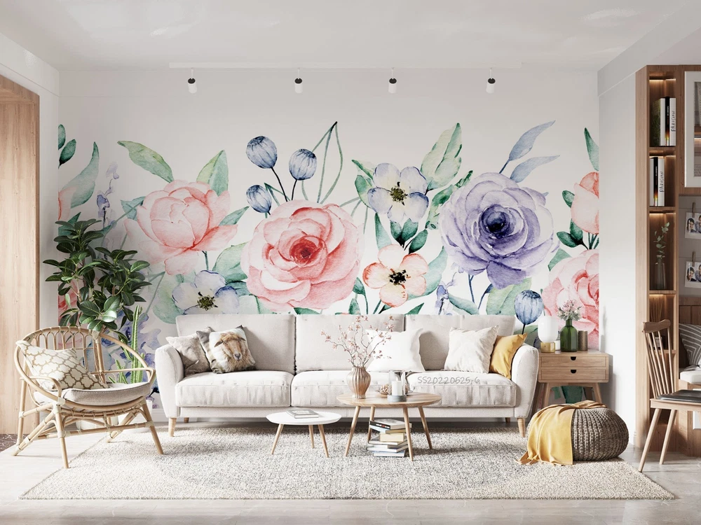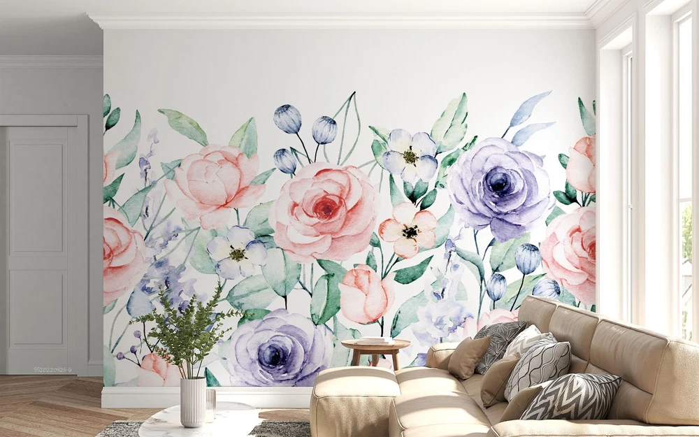 $ 15.013D Flowers Flora Watercolor Pattern Wall Murals Wallpaper Murals Wall Sticker