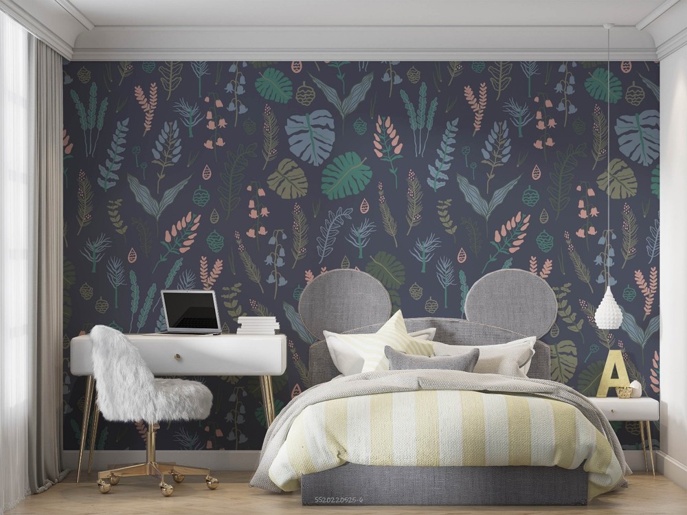 3D Plant Leaves Watercolor Pattern Wall Murals Wallpaper Murals Wall Sticker