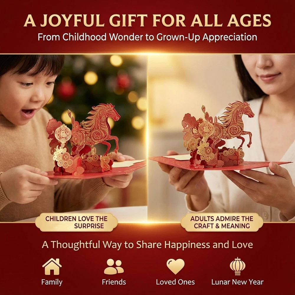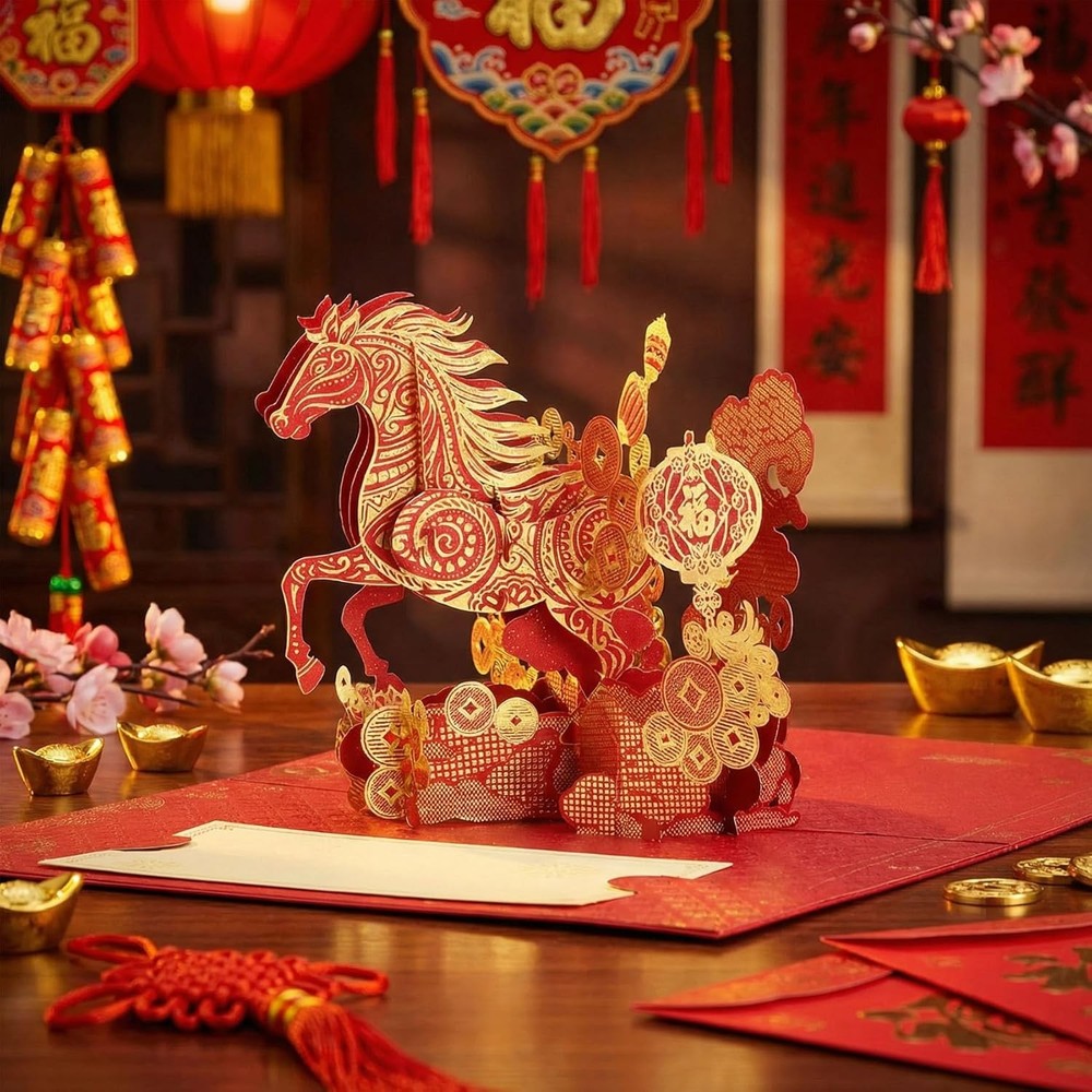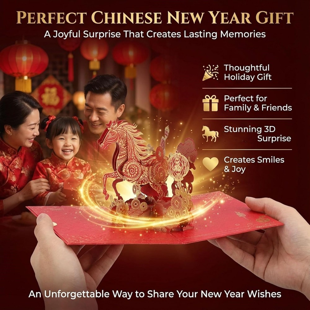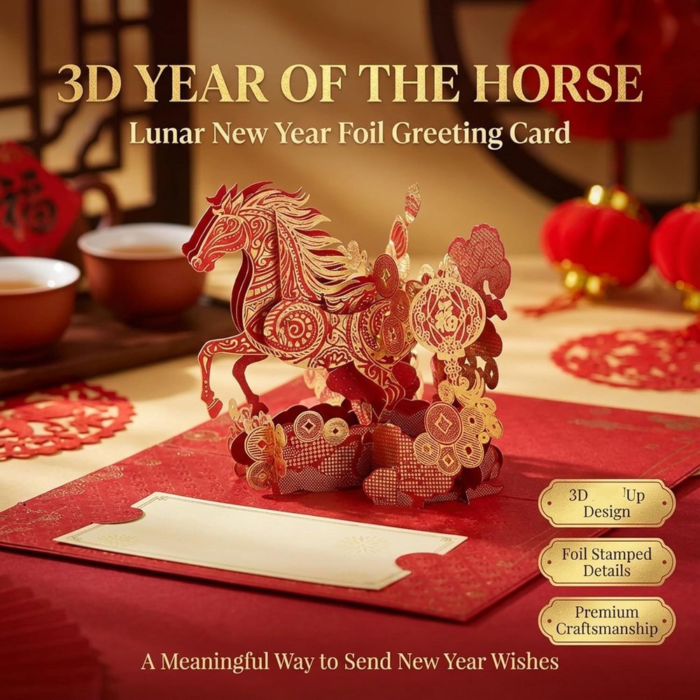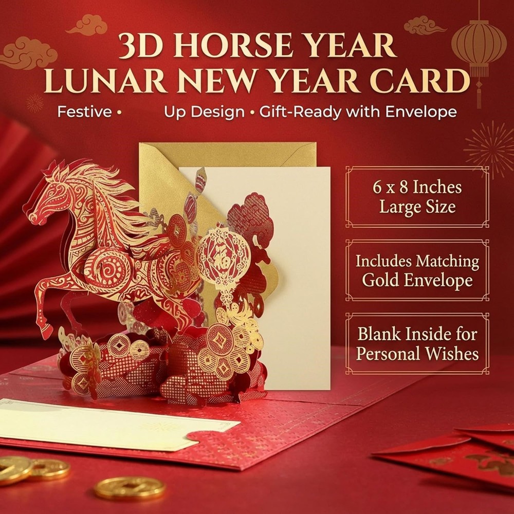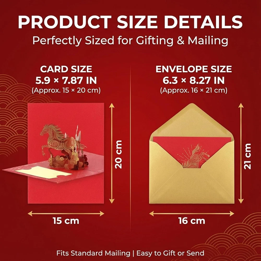 3D Foil Stamping New Year’s Greeting Cards, Year Of The Horse 2026 Features: 3D New Year the Horse Design Rich in Traditional Symbolism A Meaningful 2026 Lunar New Year Gift Specification: Greeting card size: 15x20CM/ 5.9 × 7.87inch Envelope size: 16x21CM/ 6.3 × 8.27inch Material: paper Package include: 1 Pc * 3D Foil Stamping New Year’s Greeting Cards Notes: 1. The products are all measured by hand, there is a slight deviation 2. Due to different shooting lights and monitors, there may be a little color difference