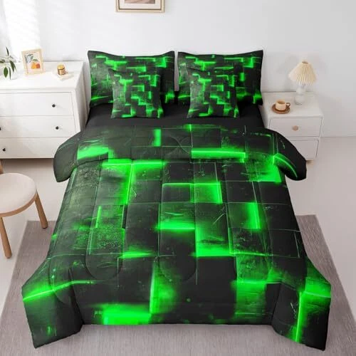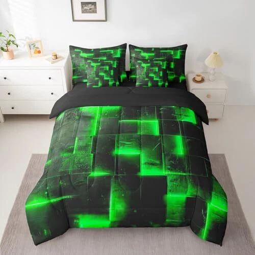Menu 1. We require immediate payment. 2. We currently accept payment via eBay managed payments only. 3. Once payment is cleared, we will dispatch your shipment within 1-3 business days. Please refer to the "Shipping" tab for more information regarding shipping speed to your destination. 3D Geometric Bed in a Bag 7pcs Abstract Aesthetic Bedding Set, Black and Green Queen Size Comforter Set Glowing Futuristic Cubes Bedding Comforter Sets, Neon Grid Bed Set Product description What You Can Get: 7pcs bed in a bag includes a comforter 90"x90", a flat sheet 90"x102", a fitted sheet 60"x80"x16", two pillowcases 20"x30" and two throw pillow covers 18"x18" Vibrant Design: Elevate your bedroom decor with this modern 7 pieces comforter set featuring vibrant colored design Versatile Style: The bold yet versatile design seamlessly blends with various interior aesthetics Easy Care: The bedding sets are machine washable. For year round softness and prevent pilling up, wash it in the gentle cycle with cold water. Sun-dry or tumble dry in low when needed Elaborate Design: The comforter features "U-Shape" stitching which offers sophisticated look alongside simplicity and will also stable inside filling. The elastic deep pocket fitted sheet fits mattress max up to 16" deep. That can always keep non-slip no matter how you twist and turn in your bed PLEASE MESSAGE US IF YOU HAVE ANY OTHER QUESTIONS, AND MANY THANKS FOR READING ALL OF THIS. Copyright ©#. All Rights Reserved.