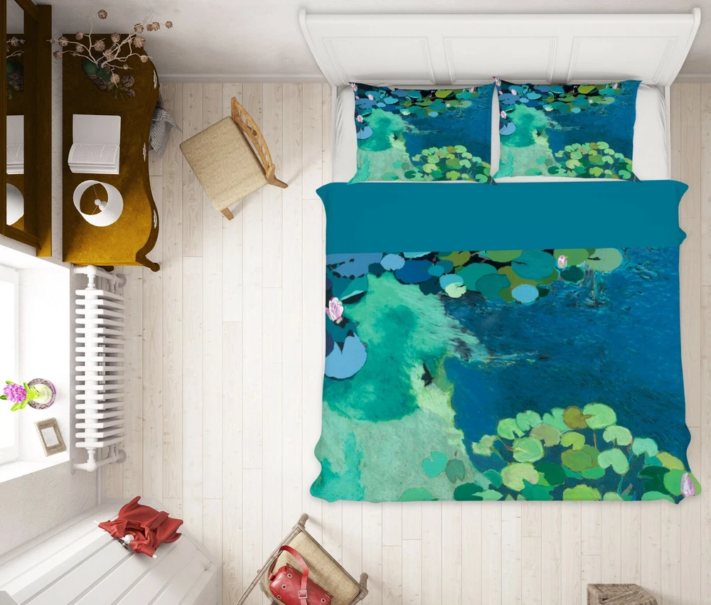3D Green Lotus Leaf A166 Bed Pillowcases Quilt Duvet Cover Allan P Zoe