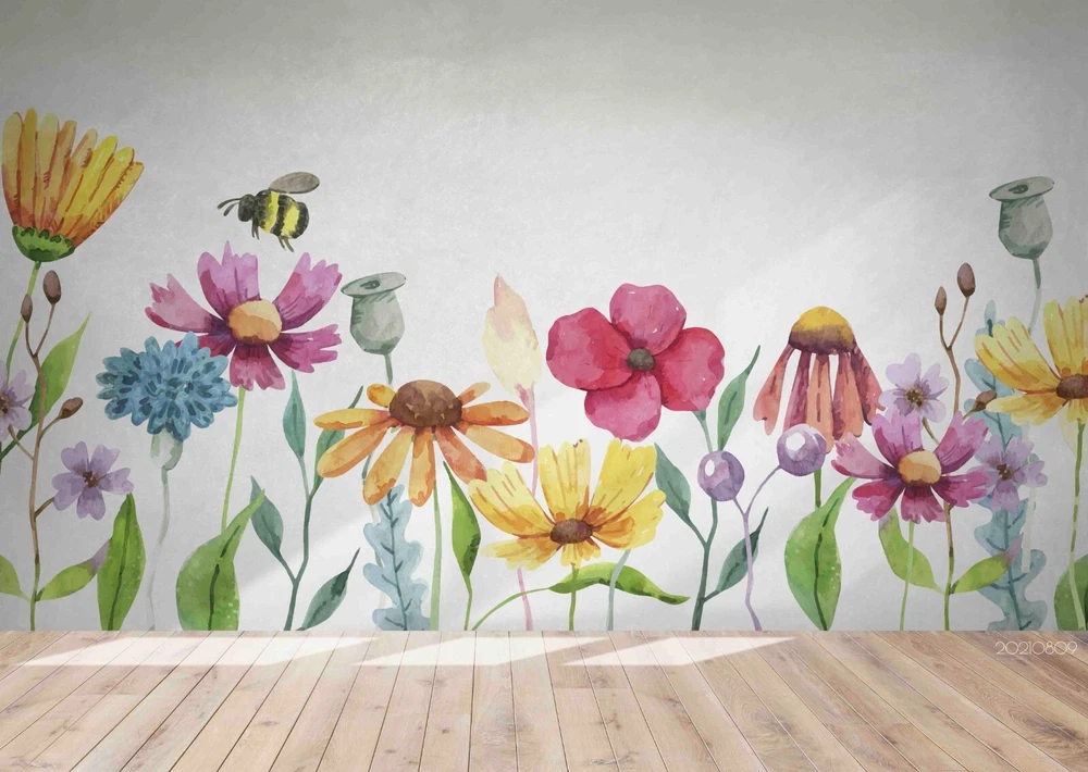 3D Hand Drawn Colorful Floral Wall Murals Wallpaper Murals Wall Sticker 97