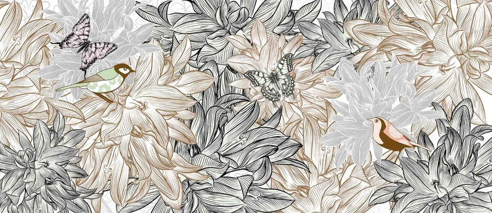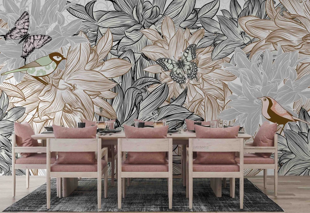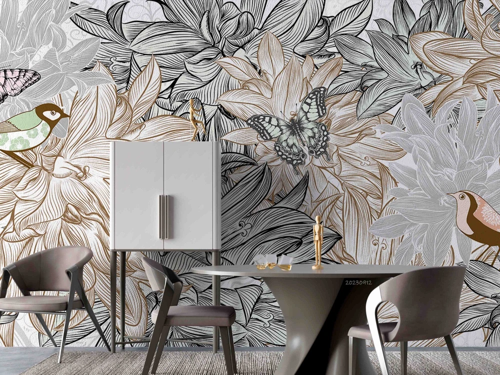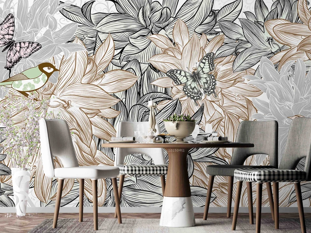 3D Hand Drawn Floral Bird Wall Murals Wallpaper Murals Wall Sticker
