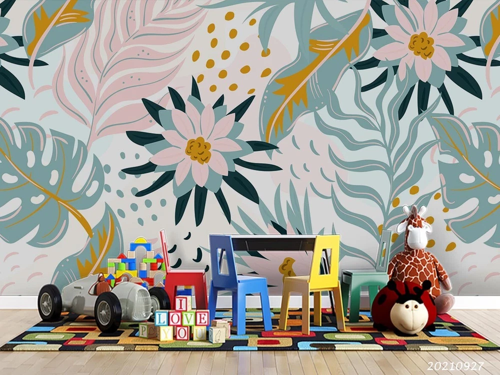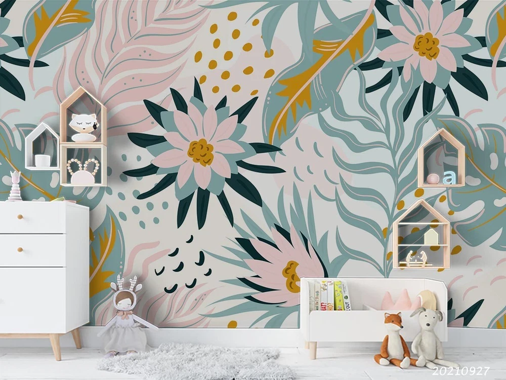 3D Hand Drawn Floral Leaves Wall Murals Wallpaper Murals Wall Sticker 11
