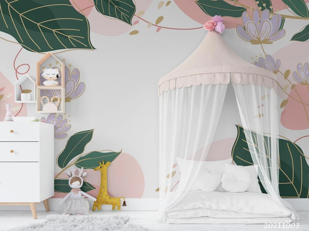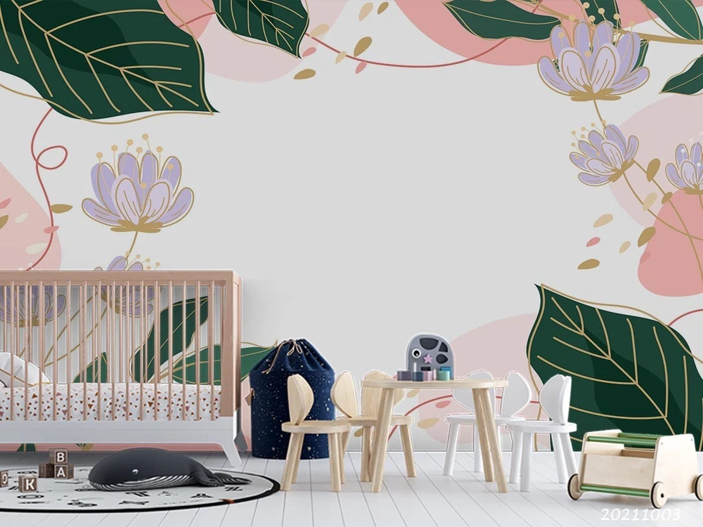 3D Hand Drawn Floral Leaves Wall Murals Wallpaper Murals Wall Sticker