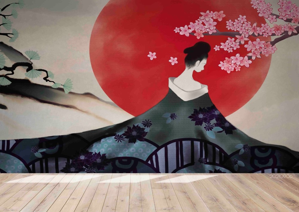 3D Japan Sakura Woman Wall Murals Wallpaper Murals Wall Sticker