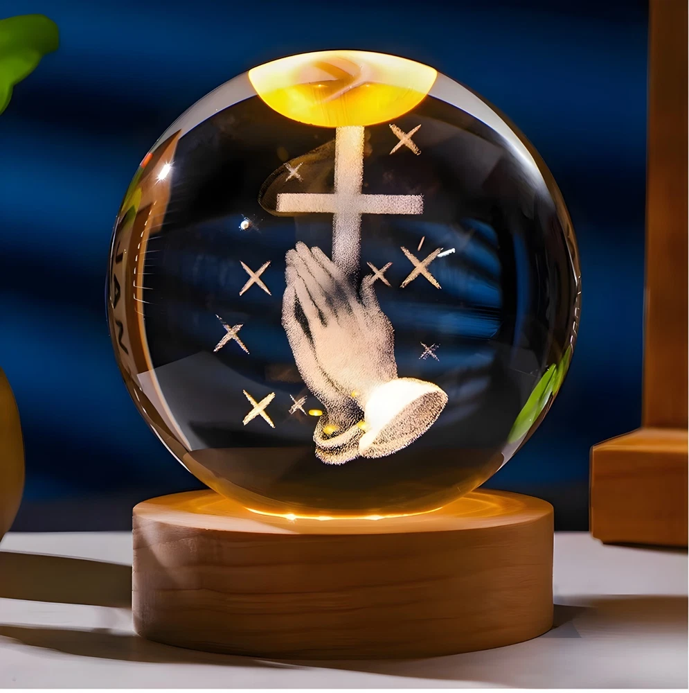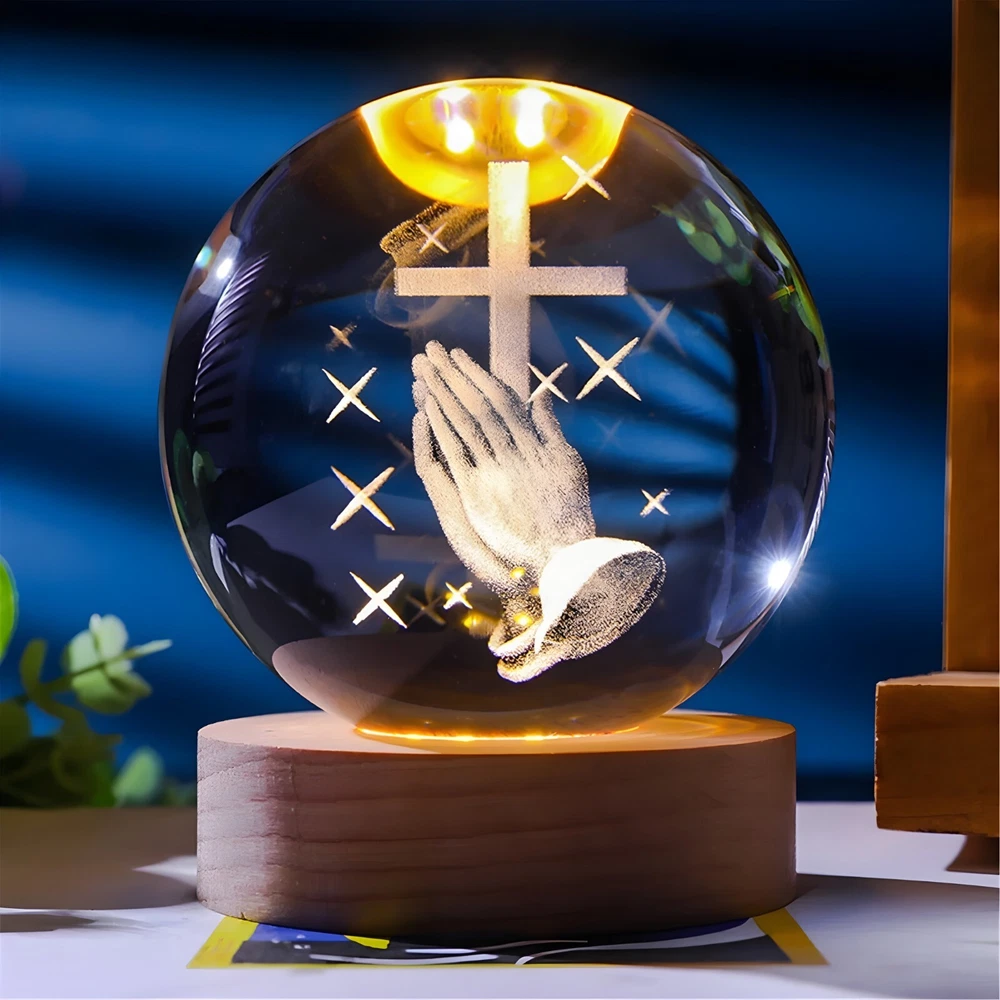 3D LED night lamp Home Decor crystal Ball ornament gift cross with praying hands