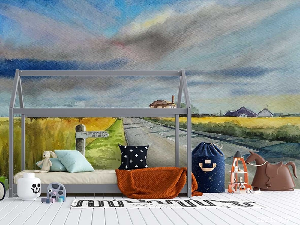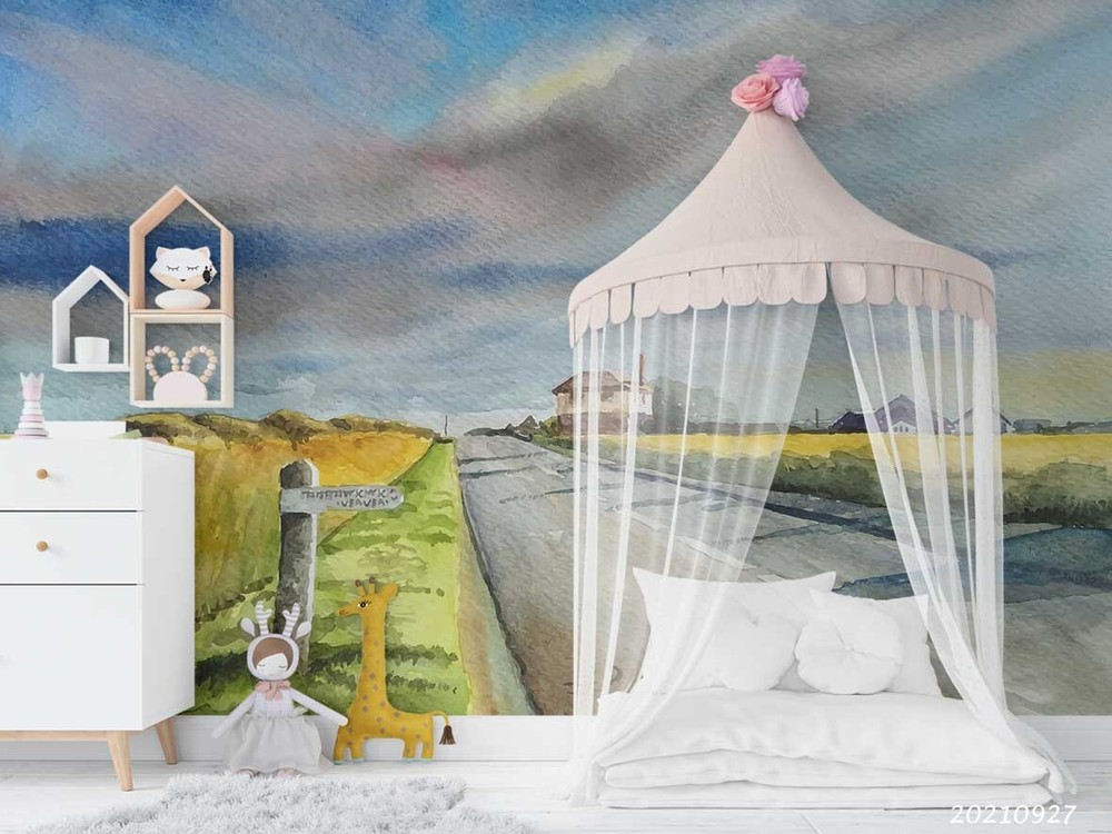 $ 13.273D Autumn Landscape Oil Painting Wall Murals Wallpaper Murals Wall Sticker