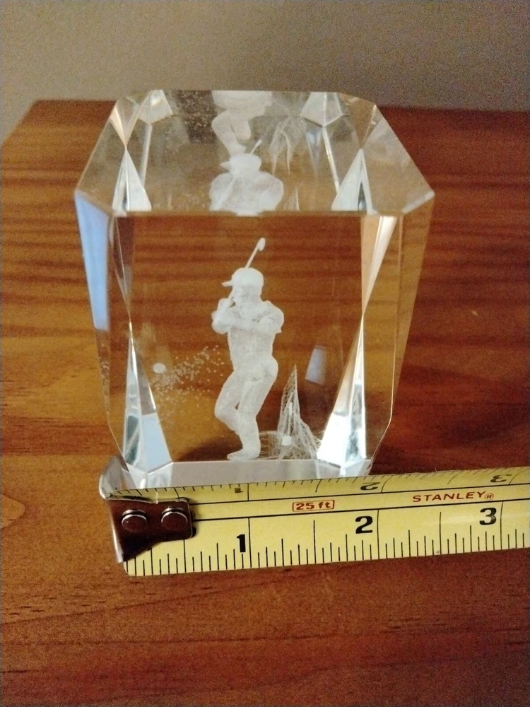 3D Laser Etched Crystal Cube Golfer Paperweight. Preowned and in good condition.