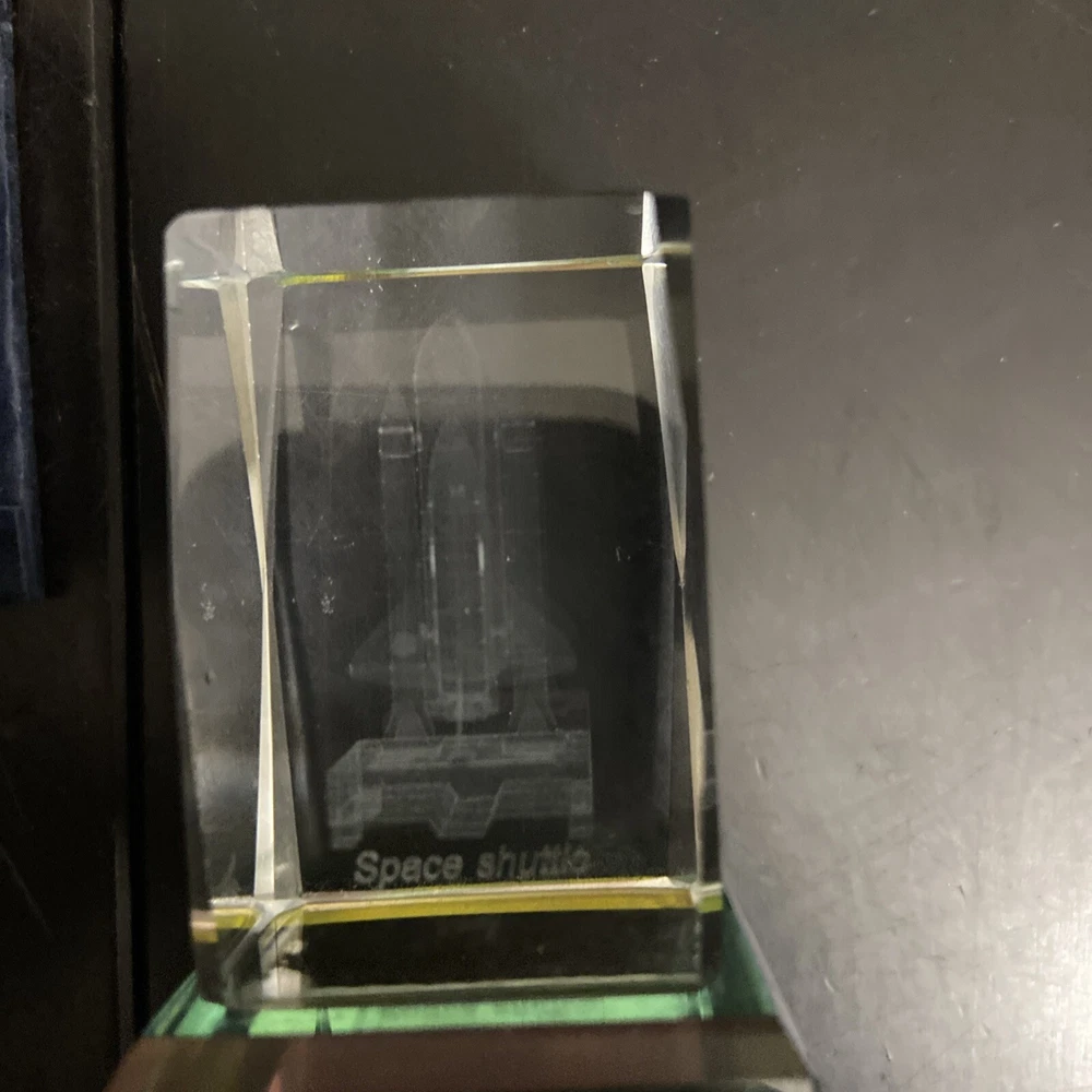 3D Laser Etched Crystal Glass Paperweight Souvenir Space Shuttle & State. Condition is Used. Shipped with USPS Ground Advantage.