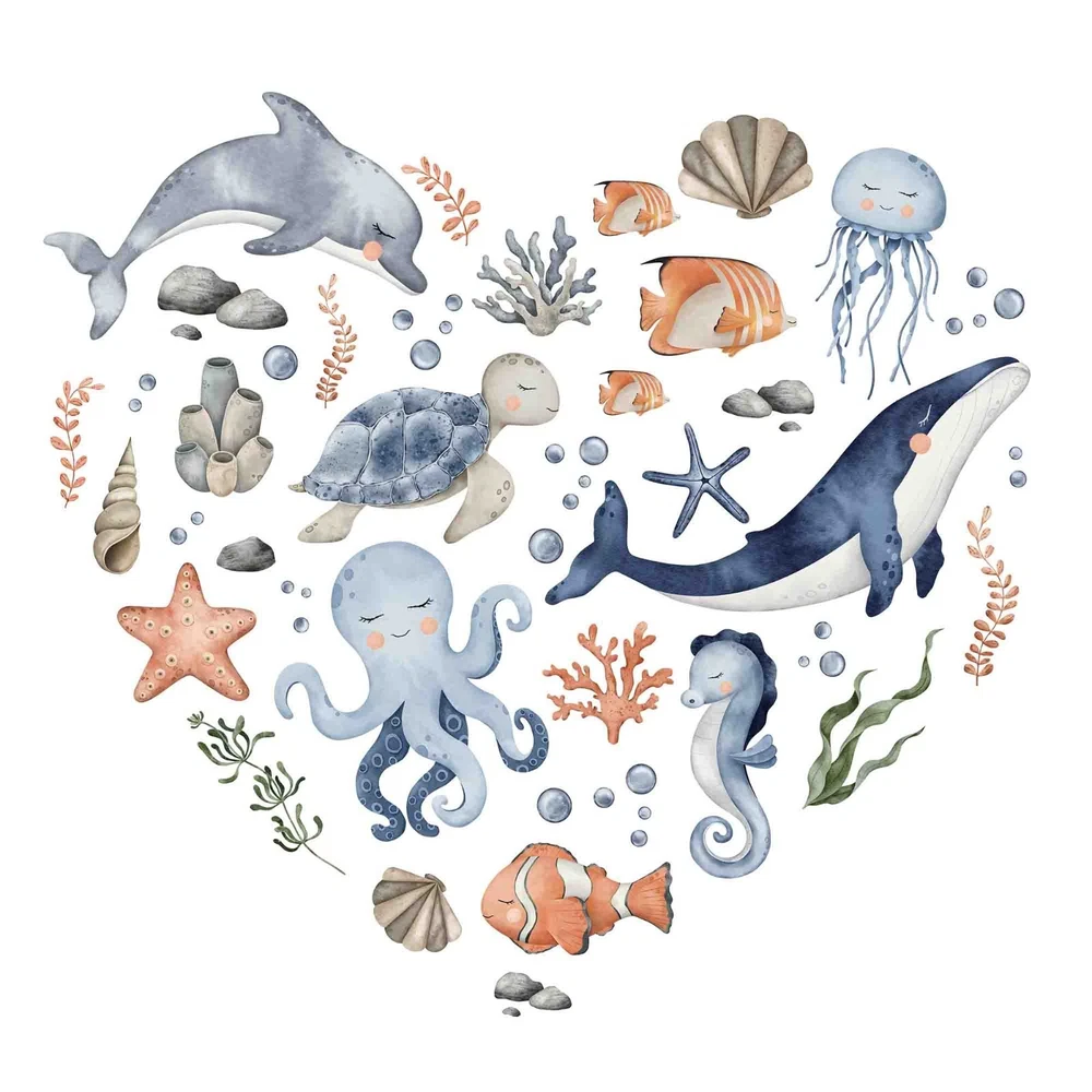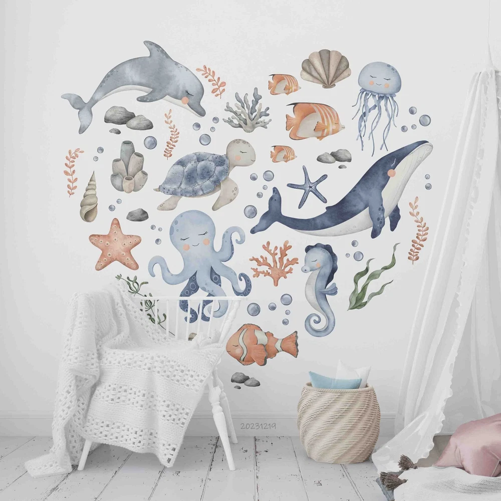 3D Marine Life Dolphin Whale Kids Wall Murals Wallpaper Murals Wall Sticker