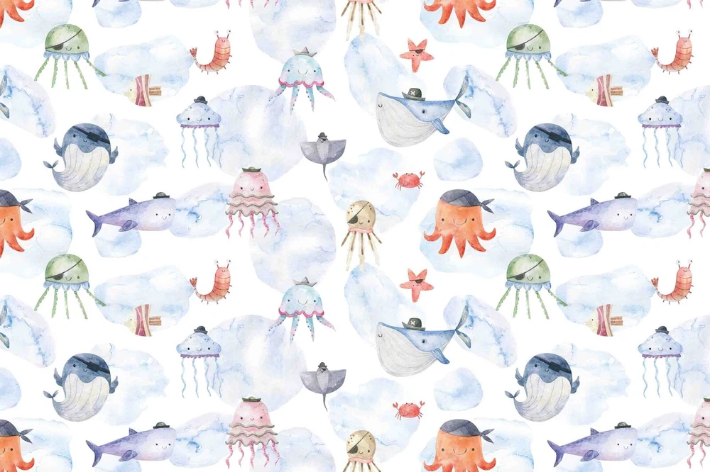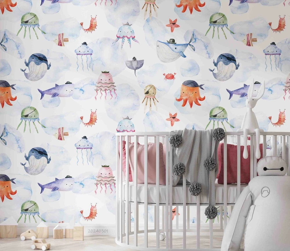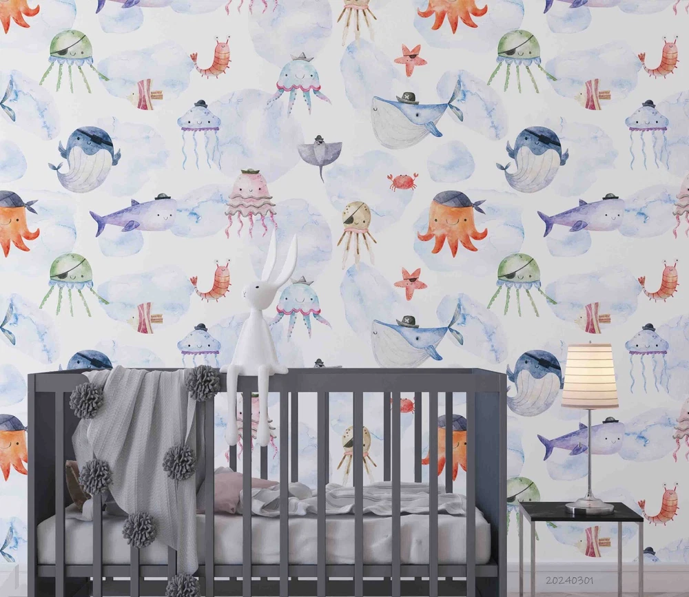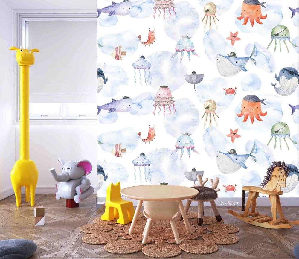 3D Marine Life Whale Jellyfish Kids Wall Murals Wallpaper Murals Wall Sticker