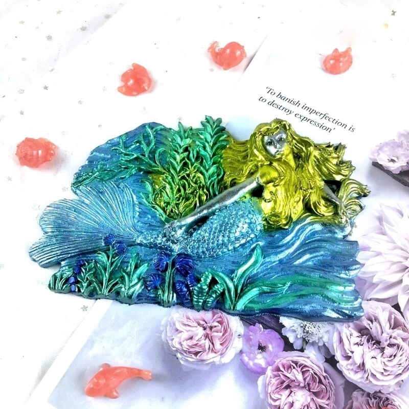 Features: Individuality decor,the finished sea-mermaid resin art perfect for interior and exterior decoration such as living room, bedroom, study, kitchen, dining room wall, can also be hung in your garden, courtyard, porch, deck, balcony or desktop ornaments Practical and sturdy material, the mermaid molds for resin make of silicone material with excellent elasticity, superior high tear strength, very flexibility and durability. silicone mold resin with glossy interior surfaces, smooth interior makes it easy to de-mold after it is fully cured. Suitable for many casting materials,the silicone molds for resin are compatible with many casting materials, especially good for epoxy resin, casting resin,add resin pigment, resin dye,and embed different kinds of embellishments or fillers,as well as used with the following casting materials such as wax, soap,gypsum Wonderful gift,the finished products can be sweet warm gift for friend ,family or yourself. Unique designs,mermaid and sea plants-resin mold,lifelike-grain,giving them real life feel! Specifications: Material:Silicone Package Includes: Piece Wall-Decor Mold note: Please allow 1-2cm errors due to manual measurement. Due to the difference betweeen different monitors,the picture may not reflect the actual color of the item.