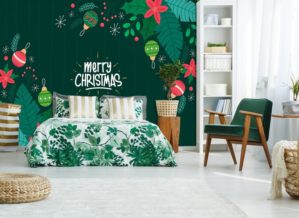 3D Merry Christmas Peel and Stick Wall Mural ZHUA45618 Self-Adhesive Decor