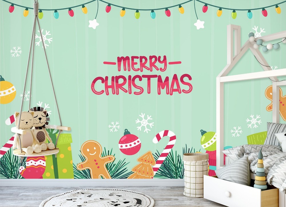 3D Merry Christmas Wallpaper ZHUA45577 Self-Adhesive Removable Wall Mural