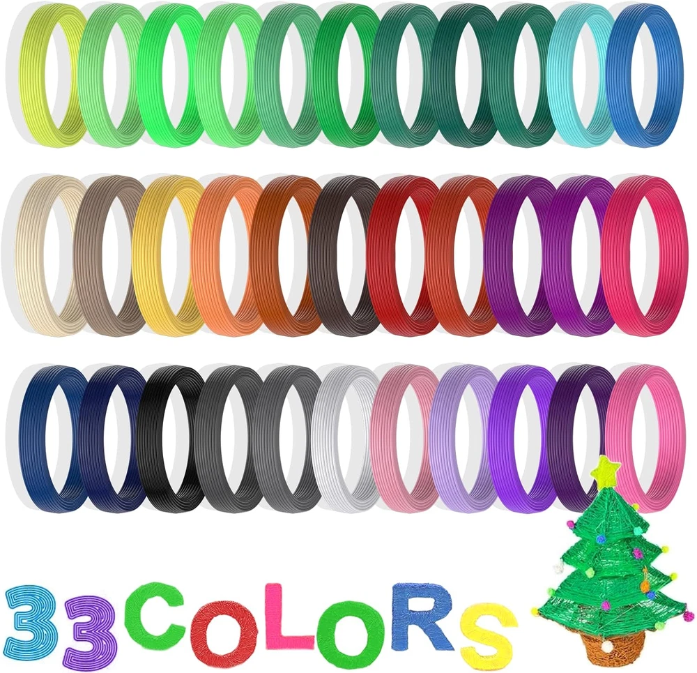 Rich Colors: The 3D filament set has a total of 26 regular colors, 4 fluorescent colors and 3 luminous colors, allowing you to shine in the dark. With this 3D pen refill set for kids, you can get all the colors you want 1.75mm Diameter:30 Unique Solid Colors: Compared to 3D pen filament refills 1.75mm, to make your 3D Printing and 3D drawing with great fun and fantastic Safe for Children: 3D PCL pen filament is crafted to a high standard of quality. It is safe option for children's crafts and adult arts Technology Upgrades: PLA filament for 3d pen with low temp releasing technology and high-precision PCL filament Ideal Gift: This set of 3D pen PLA filament refills is a nice gift for kids to improve their spatial thinking, cultivate creation, imagination Product Description Specification: Material: PLA Filament Color: 33 colors Diameter: 1.75mm Diamter Tolerance:+/-0.05mm Quantity: 33colors, each of 30 colors length is 10 feet, t total 330 feet Why do you choose AUBECO 3D pen filament? Safe: No odor Non-toxic, non-blocking and tasteless. Excellent quality: 3D printing filament is crafted to a high standard of quality, which is extracted from degradable materials. Technology upgrades: The upgraded PLA is not easy to break. Never worry about nozzle clogging, discoloration, or bubbling. Rich in color: Available in a variety of colors to make your creation full of vitality. Wide compatibility: Compatible with most well-known 3D pens. Insert the PLA filament after preheating the 3D pen. Do not touch the head of the pen to prevent burns when using. Store the PLA plastic filament in a cool, dry place. It is preferable to use the filament in a dry and ventilated environment.