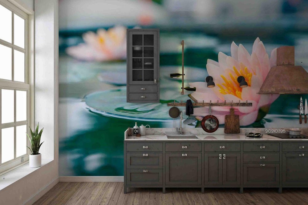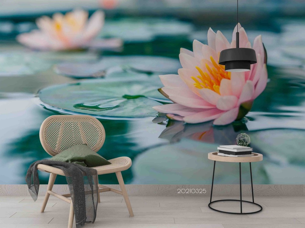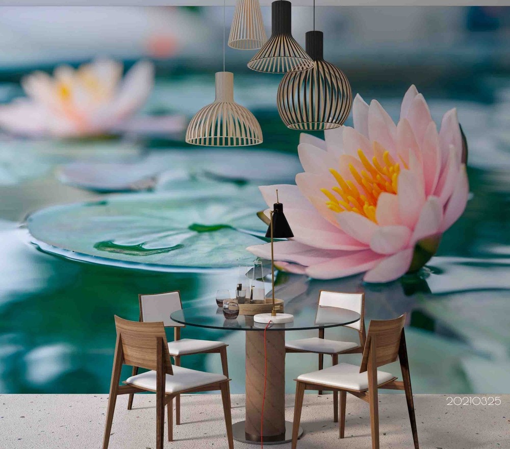3D Pink Lotus Pond Landscape Wall Murals Wallpaper Murals Wall Sticker