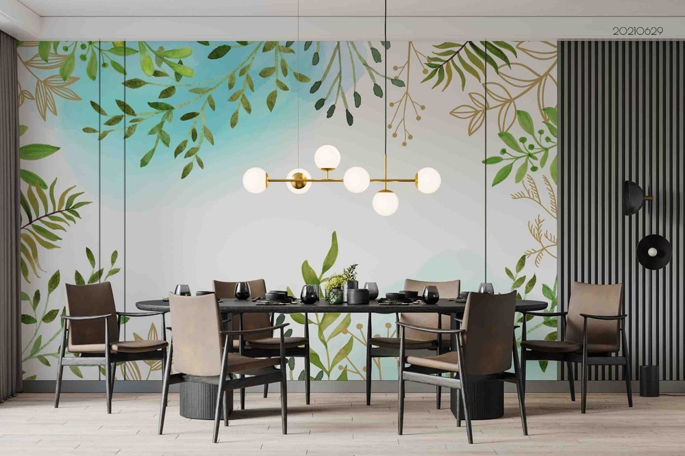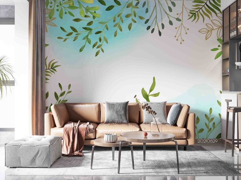 3D Plants Leaves Watercolor Wall Murals Wallpaper Murals Wall Sticker 6