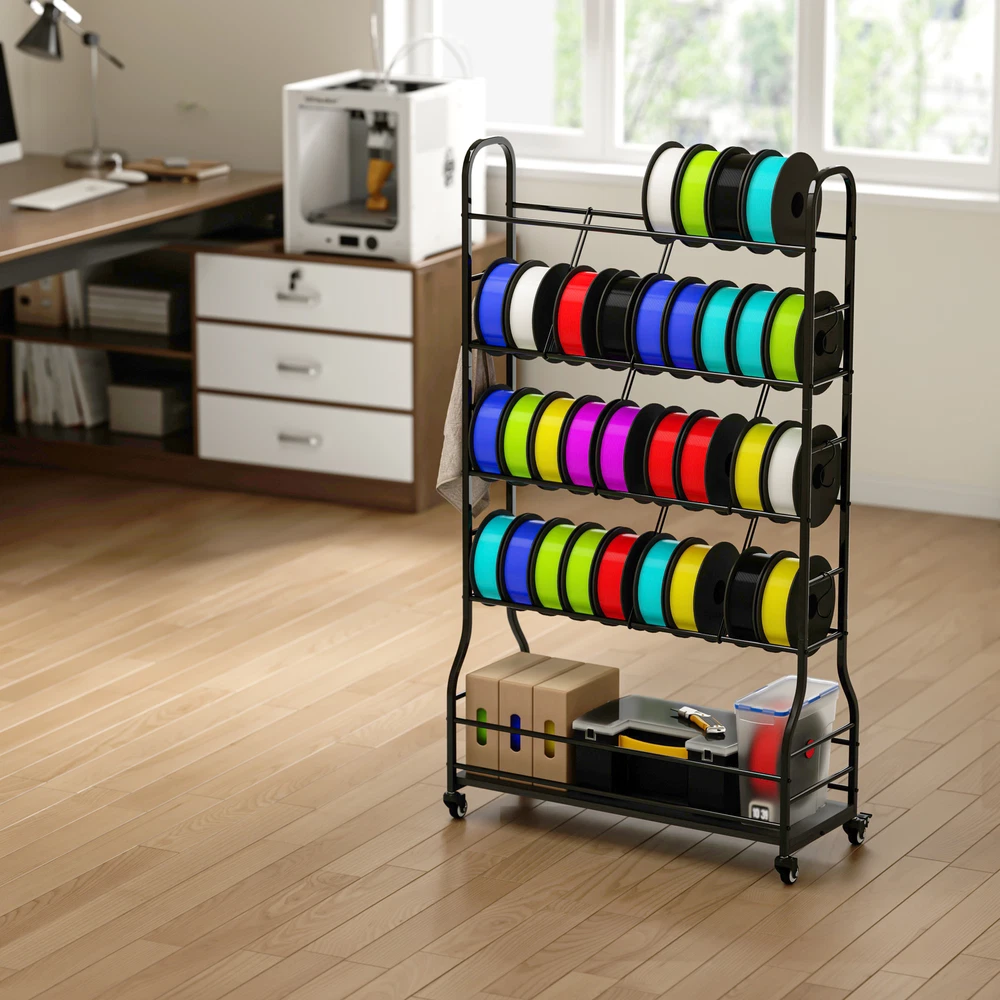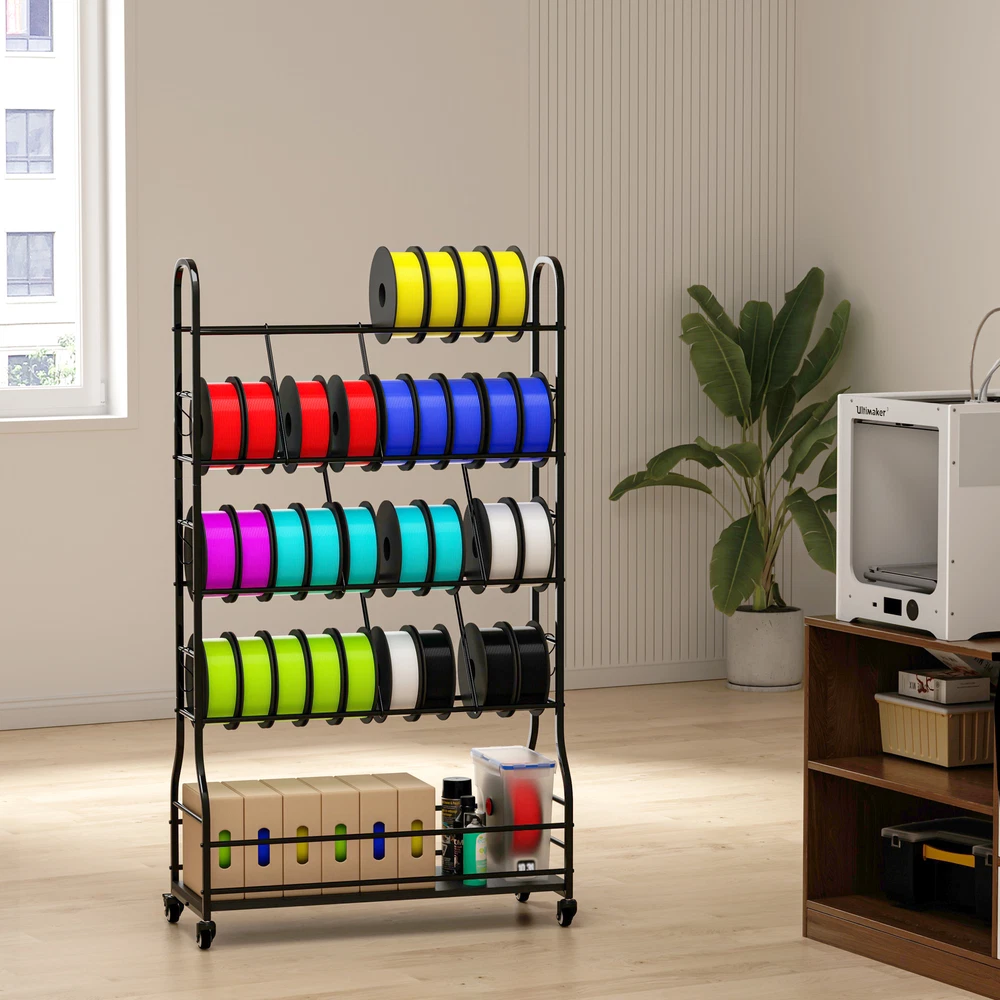 3D Printer Filament Storage Rack With Wheels 5 Tiers Metal Spool Holders Shelf