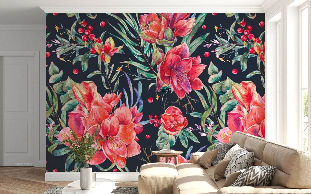 $ 14.753D Hand Drawn Flowers Leaves Pattern Wall Murals Wallpaper Murals Wall Sticker