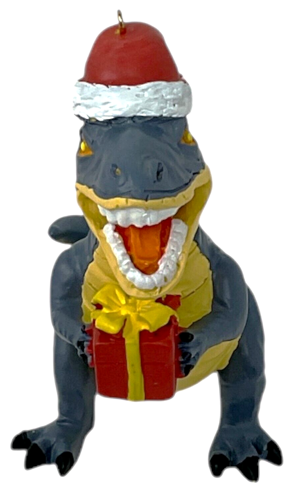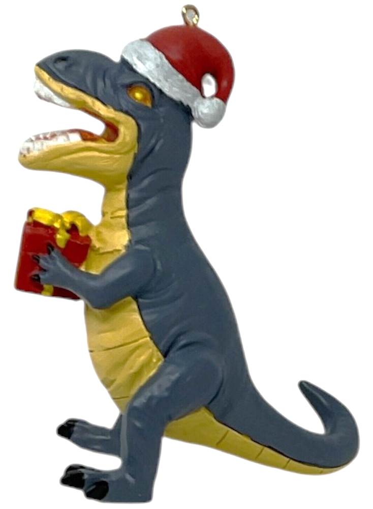 Resin Dinosaur in Santa Hat Hanging Christmas Tree Ornament 4.5" x 4". New in Box - Free Standard Shipping.