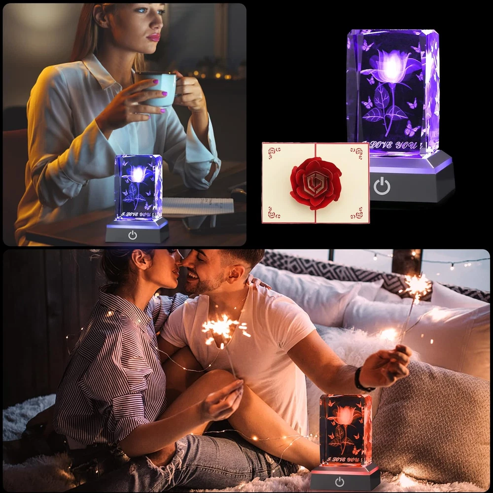Store New Arrivals Add to Favorite View Feedback Contact 3D Rose Crystal, Birthday Gifts for Girlfriends Anniversary Mothers Day Valentines Day Wedding Cool Unique Gifts for Her Mom Wife Women, I Love You Presents Description Light Source Type LED Item model number 3D-C Number of Items 1 Power Source Battery Powered Pattern Solid Number of Light Sources 1 Control Method App Is Electric No Batteries Included? No Lighting Method LED Lamp Type Table Lamp Number of Pieces 6 Room Type Bedroom, Living Room Product Dimensions 2.63"D x 2.63"W x 4.32"H Material Crystal Controller Type touch Included Components Bulb Indoor/Outdoor Usage Indoor Country of Origin China Water Resistance Level Waterproof Batteries Required? No Item Weight 1.79 pounds Connectivity Technology USB Special Features Color Changing Special Feature Color Changing Shade Color R-rose-5 Mounting Type Tabletop Color R-rose-5 Is Cordless? Yes Base Material Crystal Is Waterproof true Recommended Uses For Product Decoration Shade Material Crystal Switch Type Touch MAKES A GREAT GIFT SET: Engraved crystal with roses, color changeable LED light base, 3D rose greeting card, beautiful gift box and gift bag. This is the perfect gifts for birthdays, Christmas, Mother's Day, Father's Day, Thanksgiving, anniversaries, gifts for girlfriends, gifts for moms, gifts for wife, gifts for grandmother, gifts for her, wedding gifts for couple and gifts for women. VERY ROMANTIC AND LOVE-FILLED GIFT: Beautiful crystal roses, simple and elegant, with amazing engraving pattern details, give a crystal rose that will not fade to your favorite person, which represents your eternal love for her. It is an attractive and impressive creative gift. Perfect gift and love gift for girlfriend, mom, wife, husband, couple, fiancé, fiancée, bride on birthday, Valentine's Day, anniversary, proposal, wedding. PRETTY CUTE IMPRESSIVE GIFT: LED colorful light base, It can change color or keep a color light, bright colors, anyone will be fascinated by its different colors and color-changing luminous effect, it is a cool gifts for sister, friend, classmate in birthday, graduation ceremony GREAT IDEA GIFT: LED base can be powered by USB or battery (product does not contain batteries), so that you can send the gift can be light up again at any time and place, stunning brilliant colorful lights, will make her fascinated and like the gift you send, it can be placed in the dresser, living room, work desk, bedroom, fireplace to bring a sense of ritual to life PERFECT AFTER-SALES SERVICE: we provide free return service within 30 days, the base fails within one year, free , any problem can , we will give you a perfect solution. Product Description Gift box packaging (two packaging colors are random) Three-dimensional rose greeting card Portable gift bag (non-woven material, reusable) Set composition: 1.3D laser engraved crystal×1 2.LED light base×1 3.data cable×1 4.3D rose greeting card×1 5.Gift box×1 6.portable gift bag×1 7.Instructions×1 ABOUT US We offer the best prices around on high quality products. Our E-store includes media such as books, movies, music and games while offering electronics, toys, sporting apparel, clothing, tools, general home, garden items and more. SHIPPING We are always working hard to ensure your package arrives as soon as possible. Please understand that some factors like weather, high postal traffic, and the performance of shipping companies are outside of our control. We offer free shipping to the lower 48 states and ship within 2 business days of payment, usually sooner. We do not accept P.O. Boxes. Please provide a physical address. For shipping outside of the continental USA, we only use eBay's Global Shipping Program.The item is shipped to KY and then sent to the rest of the world. International customers are responsible for all duties and taxes. Continue to check out in order to calculate costs for shipping the item to your country. Messages regarding eBay's Global Shipping Program MUST be directed at eBay EXCLUSIVELY. RETURNS We offer a 30-Day Return Policy on items which you are not completely satisfied with. You have the option for a full-refund or an exchange of the item. No returns are available on items shipped outside of the USA. PAYMENT We accept PayPal. CONTACT US This page content is yet to come Please ad us to your favorite seller and visit again later Thank You CUSTOMER SATISFACTION We try our very best to make sure every customer is completely satisfied. If there's a problem, message us! We're happy to help. WE ACCEPT Copyright © 2021 AutoDS. | All Rights Reserved