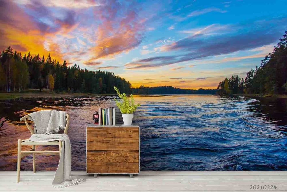 3D Sky Forest Sunset Landscape Wall Murals Wallpaper Murals Wall Sticker