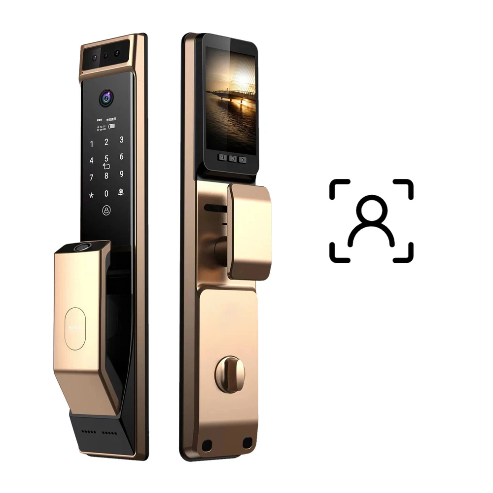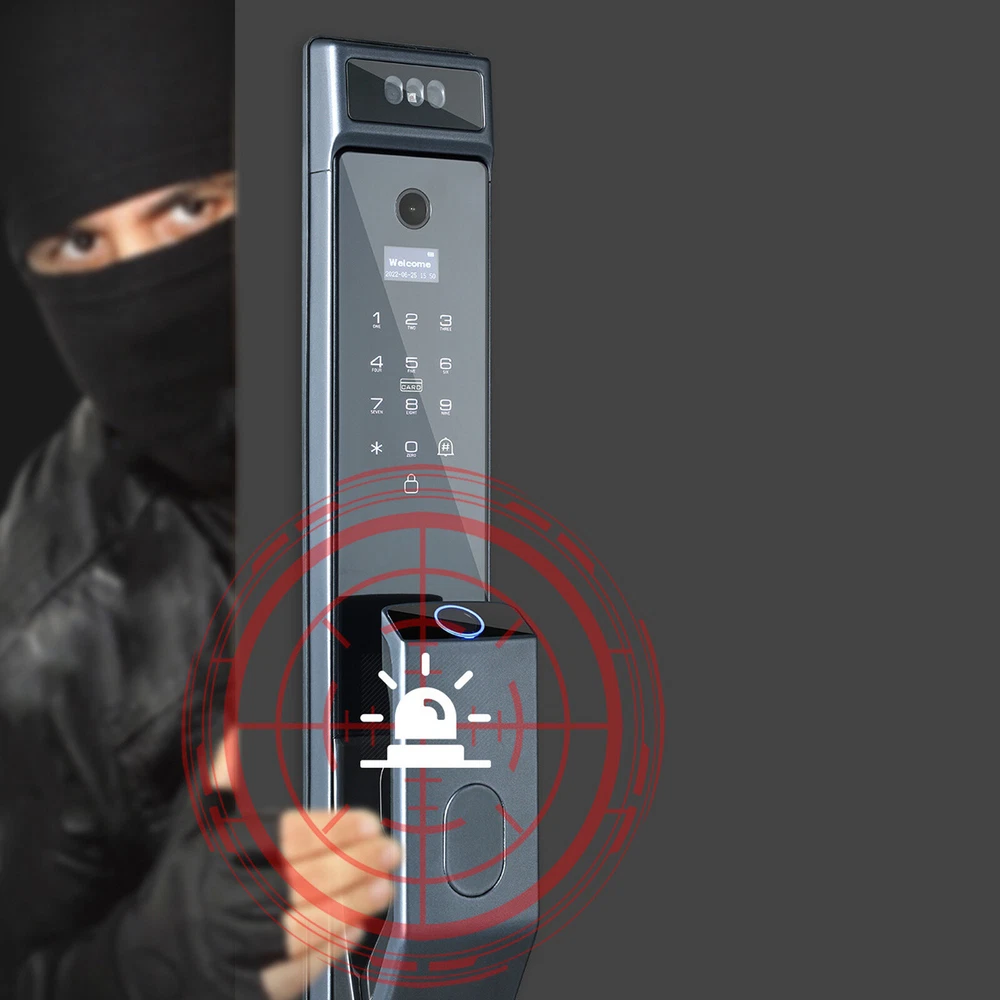 Products Description High strength aluminium alloy material, corrosion resistance. 4200mAh lithium battery power supply, reusable charging,environmental protection. Normal continuous use for 6 months 100 fingerprints, password, IC card can be input. After closing the door, the latch will pop out and lock automatically. The door can be opened with key in any condition. Even if the power is off, the fingerprint, password and IC card data will not be lost The alarm will sound automatically when the power is low, and the alarm will also be given if theunlocking is unsuccessful for many times. If battery is power off, there is USB port as emergency charge. Special Features :3D Face Recognition, Built-in Camera, Built-in Doorbell, Built-in Screen, NIGHT VISION, Tamper Alarm, Two-way Audio,WIFI, usmart go app Unlock way : APP +Fingerprint + Password + Card + Key+Face Material :Aluminum alloy Mortise : 6068/240*24mm Color :Gray/ Gold Power supply :7.4V Lithium-ion Rechargeable Batteris Weight(kgs) : 5.5Kg Size : 75*430mm Door thickness : 40mm - 120mm Work Temperature : -20-70