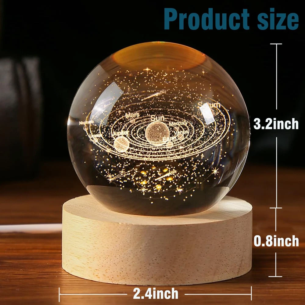 3D Solar System Crystal Ball Lamp,3.2In Crystal Ball Night Light Engraved Astron