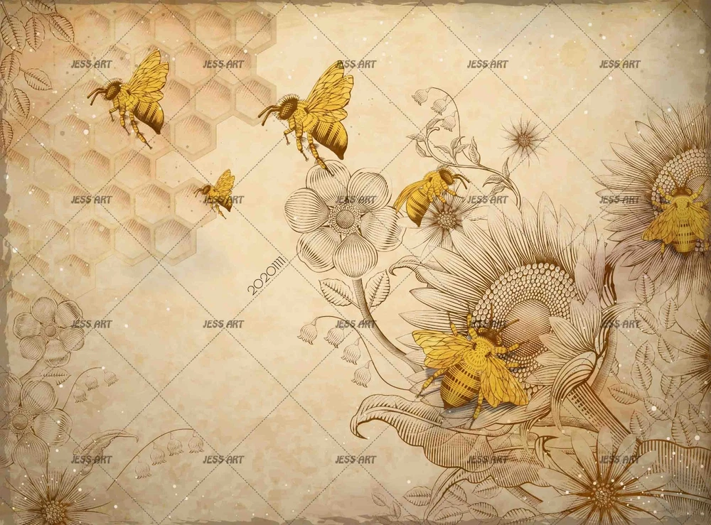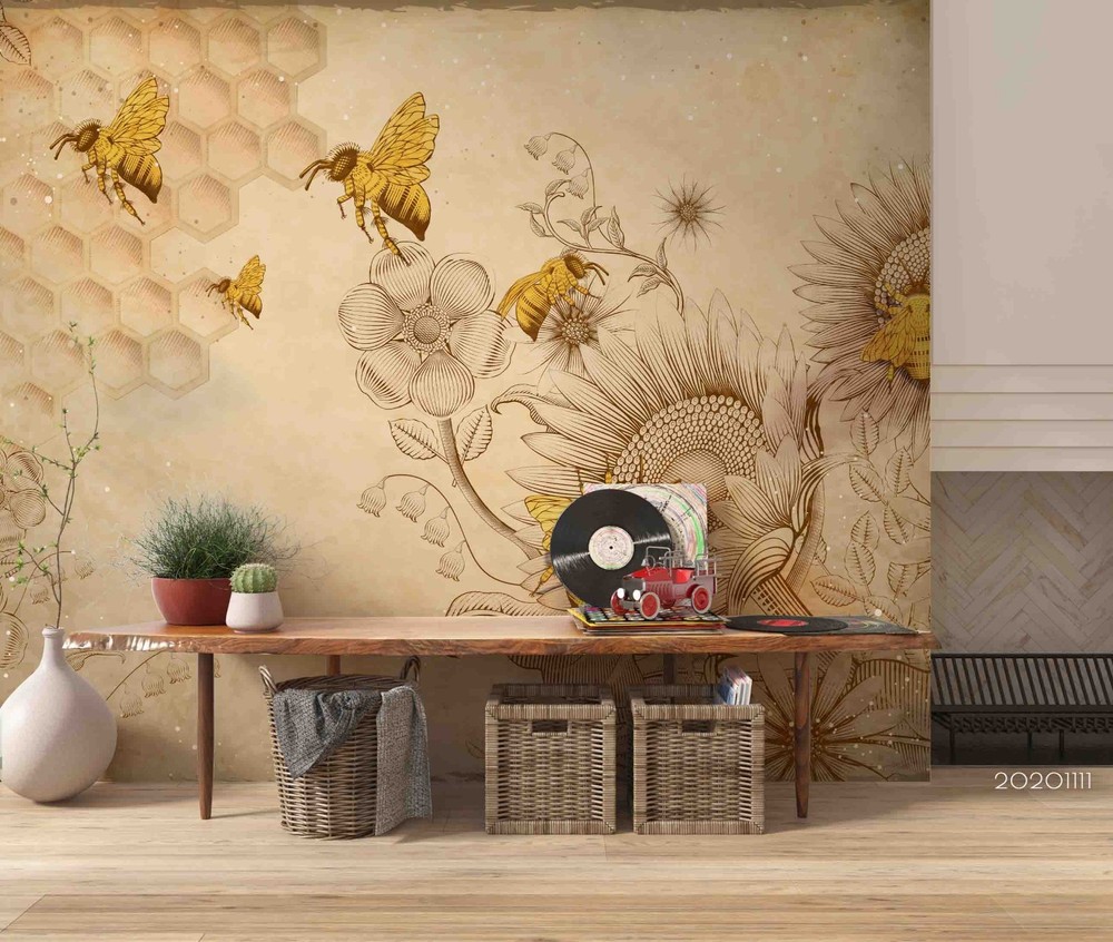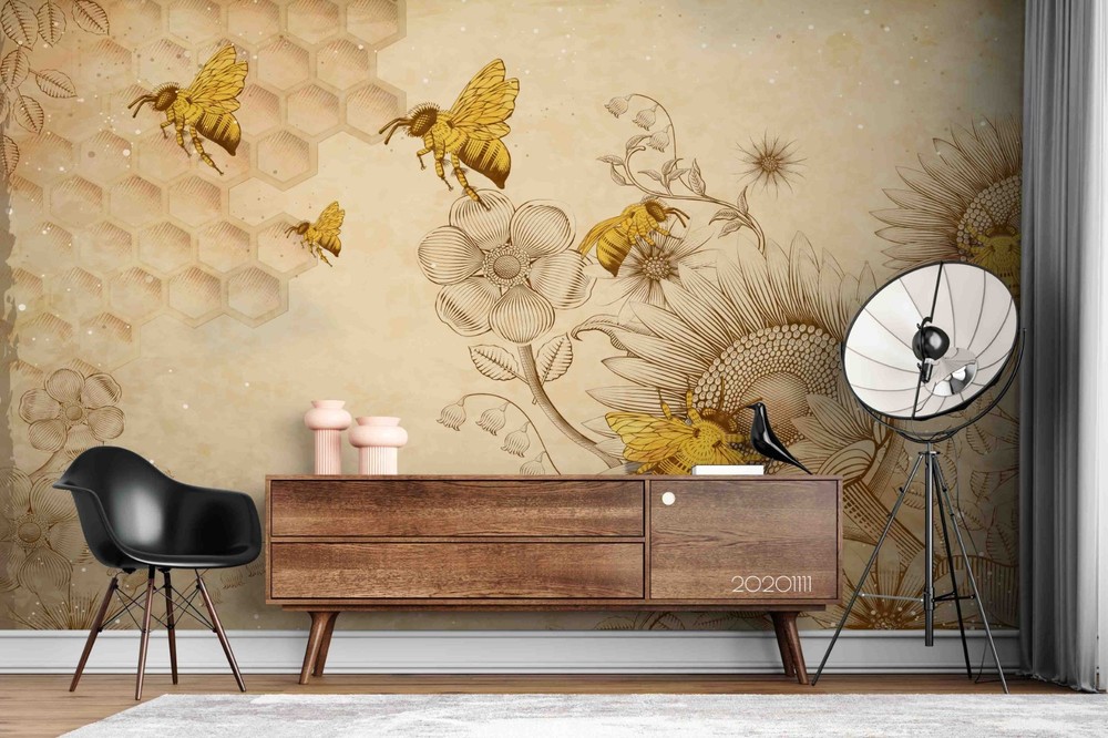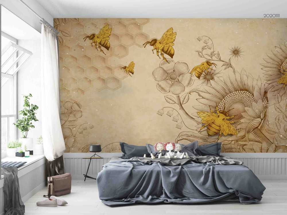 3D Sunflower Bee Illustration Wall Murals Wallpaper Murals Wall Sticker 4