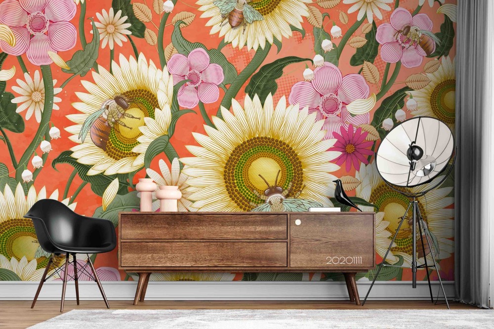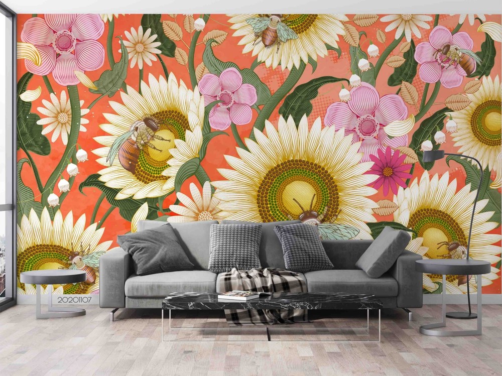 3D Plants Flowers Leaves Pattern Wall Murals Wallpaper Murals Wall Sticker