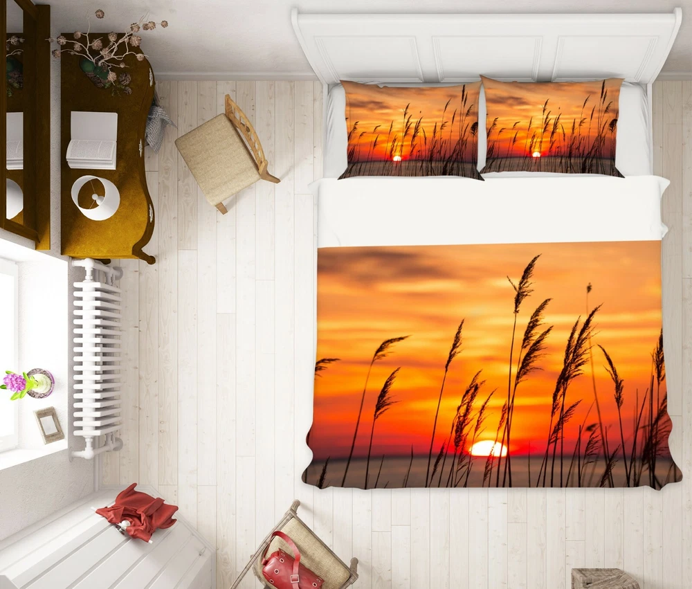 3D Sunset Grass ZHUA3400 Bed Pillowcases Quilt Duvet Cover Set Queen King Zoe