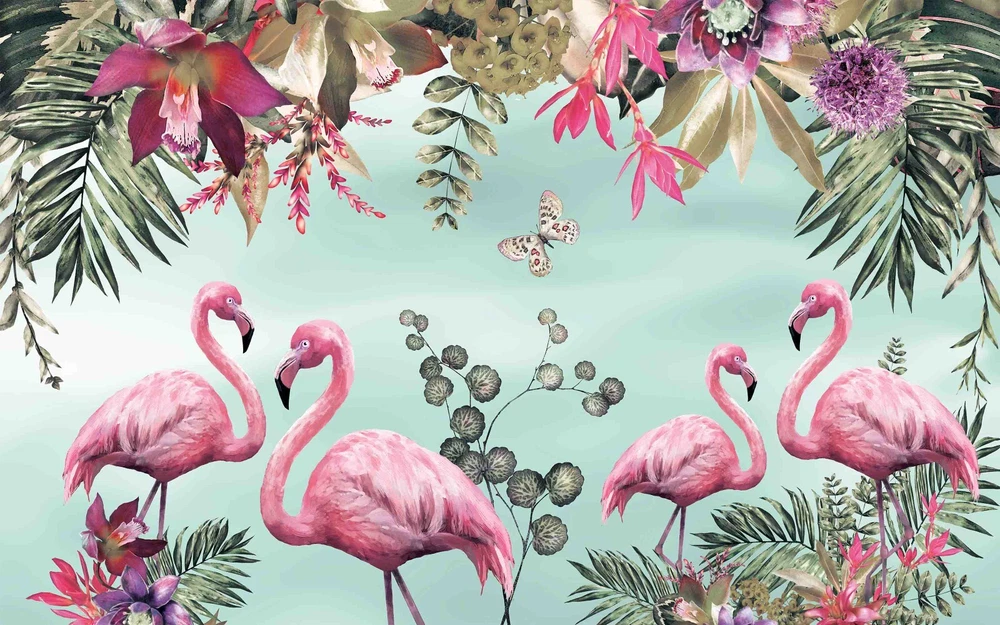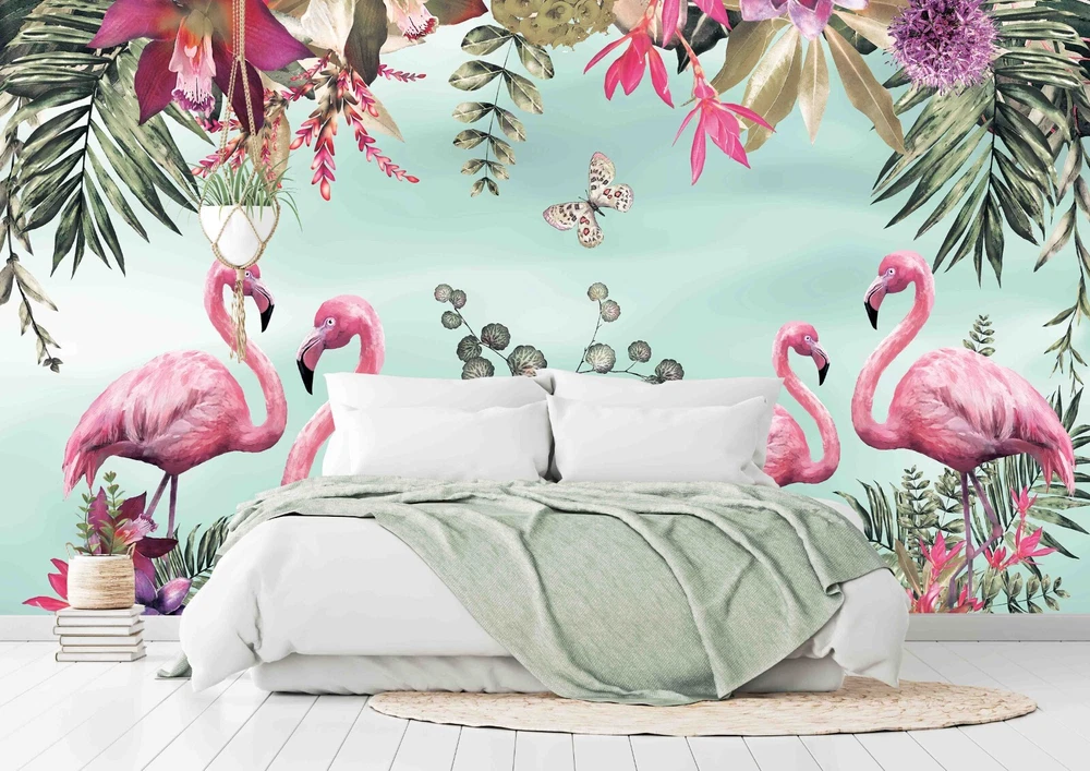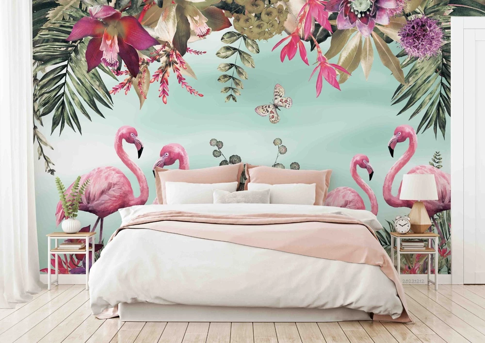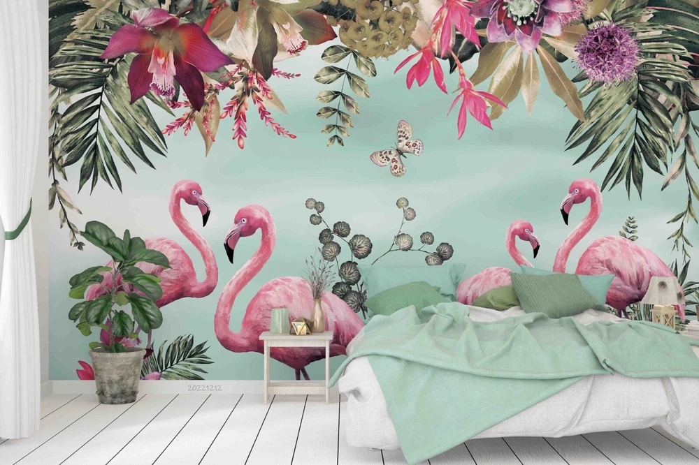 3D Tropical Floral Leaf Flamingo Wall Murals Wallpaper Murals Wall Sticker