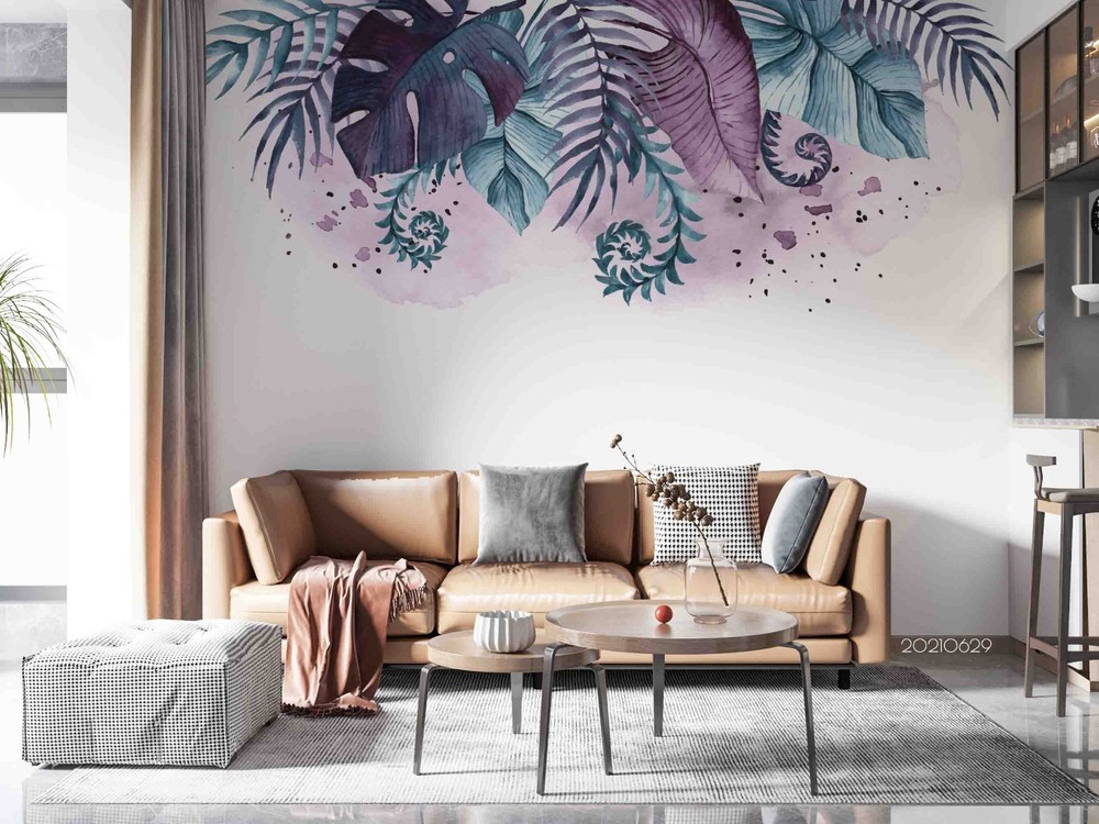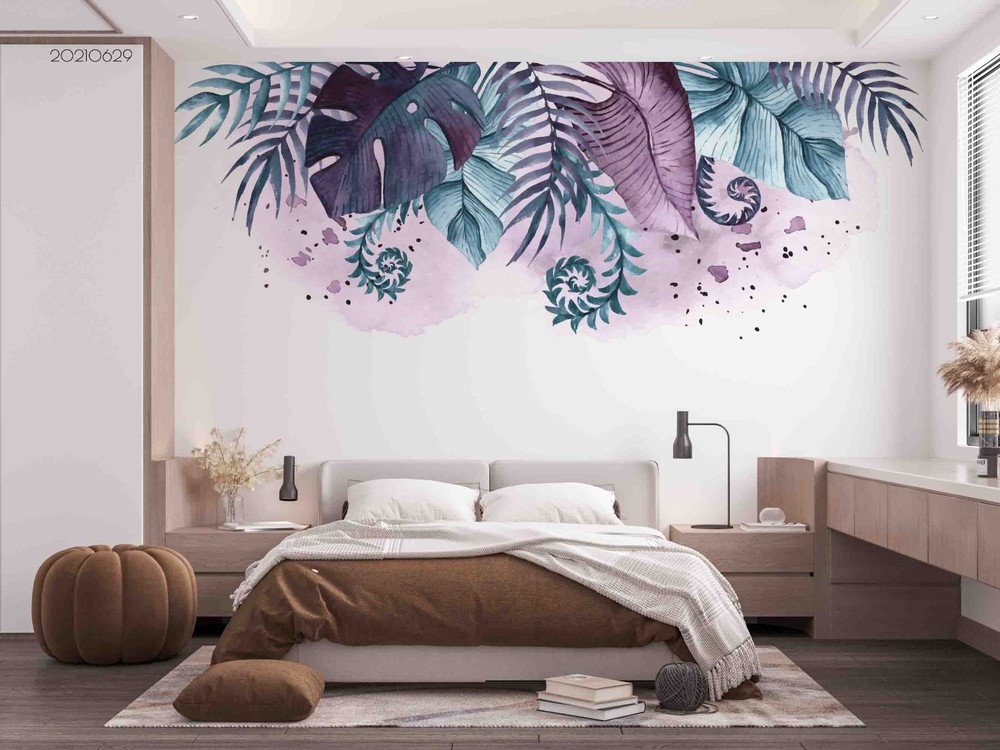 $ 15.013D Plants Leaves Watercolor Wall Murals Wallpaper Murals Wall Sticker 6