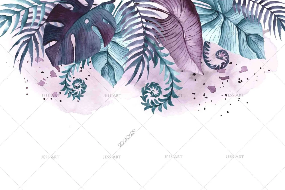 3D Green Leaves Watercolor Pattern Wall Murals Wallpaper Murals Wall Sticker