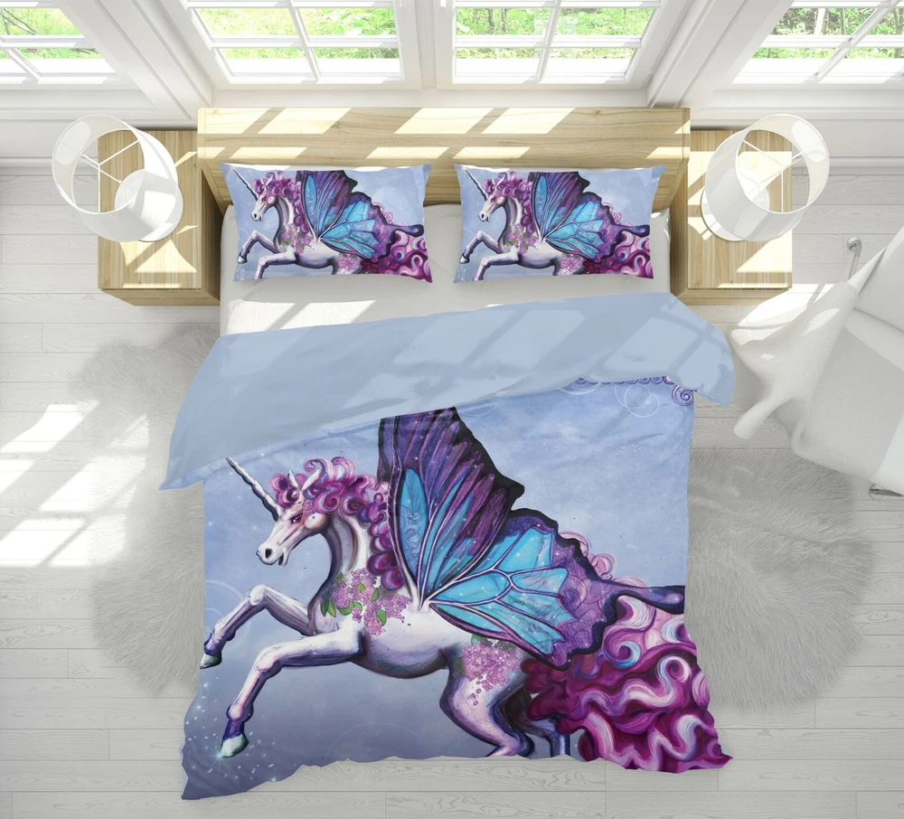 3D Unicorn Wings A004 Bed Pillowcases Quilt Duvet Cover Rose Catherine Zoe