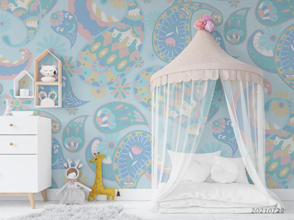 3D Watercolor Blue Feather Floral Wall Murals Wallpaper Murals Wall Sticker 888