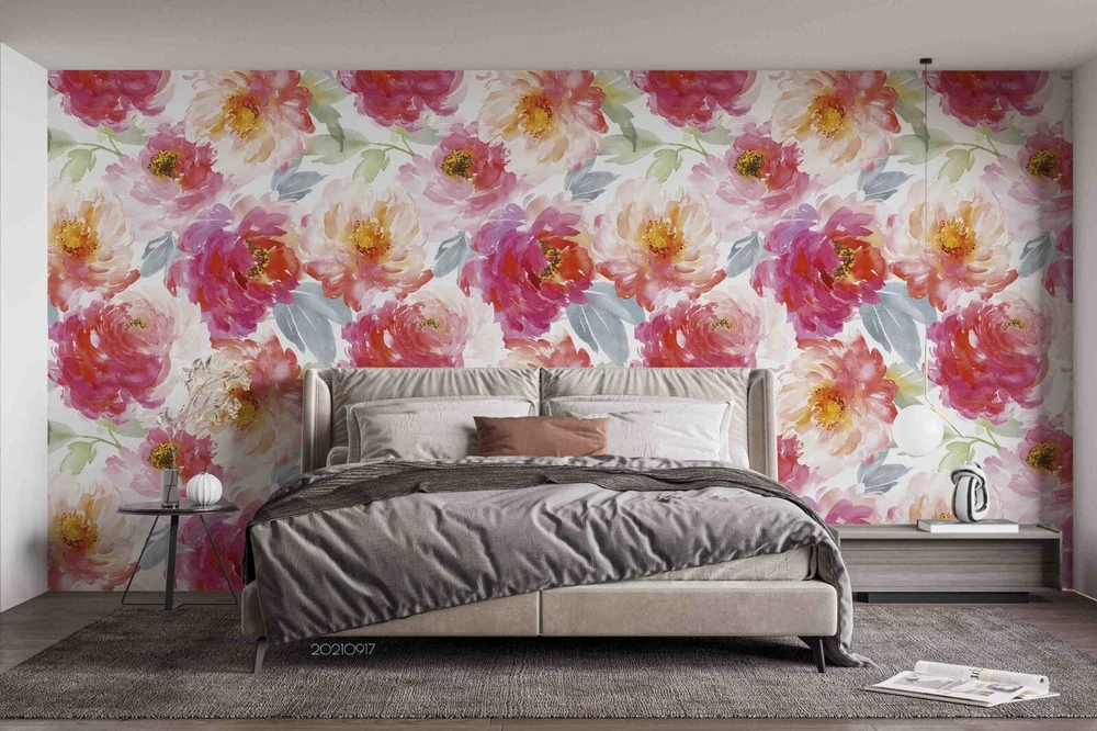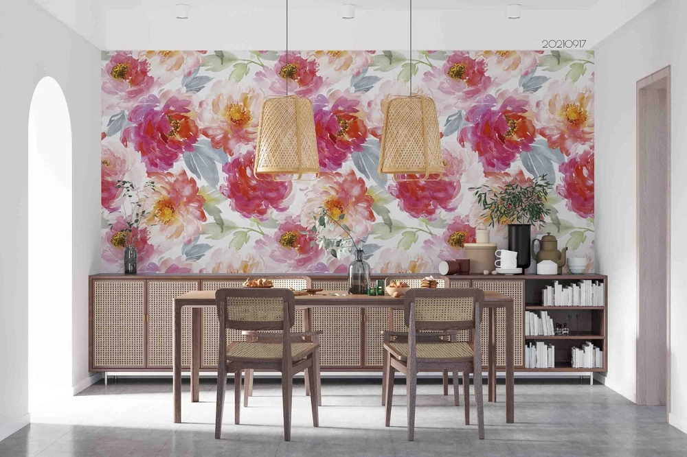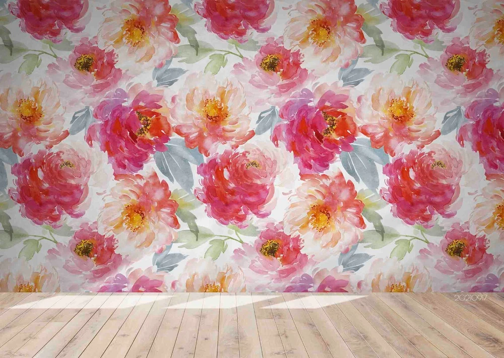 3D Watercolor Pink Floral Wall Murals Wallpaper Murals Wall Sticker