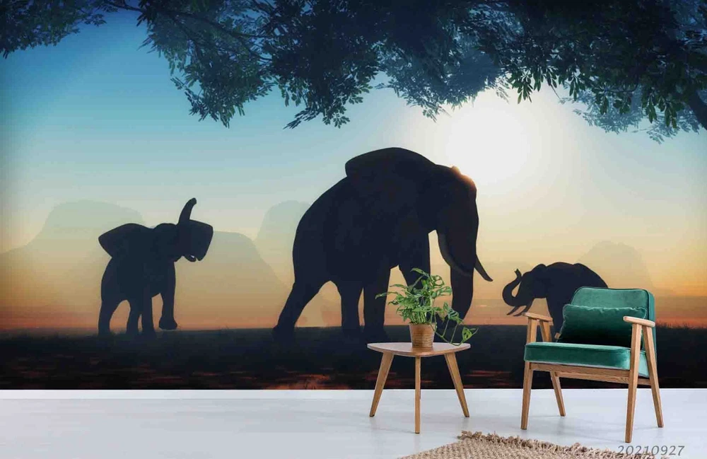 3D Wild Animal Elephant Forest Wall Murals Wallpaper Murals Wall Sticker