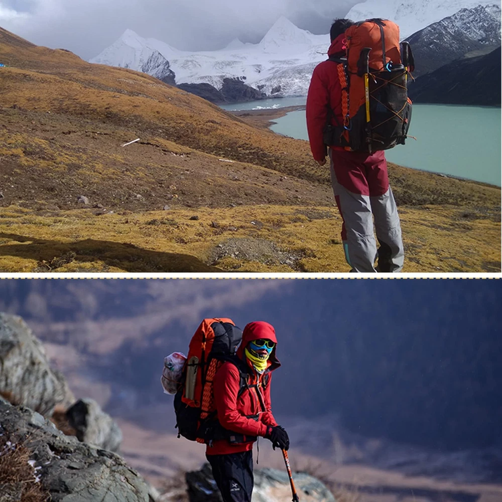 It weights 1.87lb only LARGE CAPACITY:This mountaineering rucksack is designed to carry your trekking pole and ice-axe. The regular version has a capacity of 40+16L while the version has a capacity of 46+10L.The front cross elastic mesh allows for quick and easy attachment of clothing, hats, and other frequently accessed items. Size: 80*30*22cm/31.4*11.8*8.6inch. DURABIE AND PRATICAL: This backpacking pack is made of high quality 210D nylon, which is not only durable and long-lasting, but also has the function of preventing tears and scratches, and also has waterproof performance to prevent the entry of light rain. The adjustable straps and padded back ensure maximum comfort even during extended wear.And this backpack also secures trekking poles and moisture-proof pads for added peace of mind on your back! COMFORTABLE DAYPACK: This climbing backpack is specially designed for traveling enthusiasts, ergonomic padded shoulder straps and back support,gives you more comfortable feeling.ventilation and easing burden.Sturdy frame and high-nylon extend service life. Breathable mesh shoulder straps with plentiful sponge padding help relieve the from your shoulder. Widened and thickened S-type shoulder straps and high elastic breathable back support for best. LIGHTWEIGHT: The lightweight backpacking backpack is made of durable water resistant Polyester. It weights 1.87lb(Reguar)/1.94lb() only. And the regular is the nylon fabric, the is the Dyneema Fiber. Featuring its classic silhouette,the convenient and comfortable pack is great for Backpacking use. Quality & Professional After-sales Service: We are committed to providing our customers with high-quality products. We provide customers with excellent after-sales service, if you have any questions, please feel free to us via .