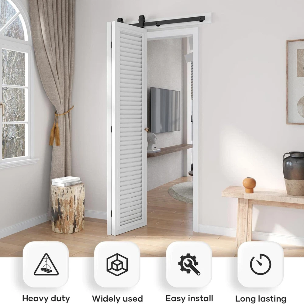 Store category Sign Up Now ! You may also like Product Description Bullet Points: Application Safety: Seamlessly integrating with your home's aesthetic, our folding door kits offer a safe design that's ideal for children, ensuring a bestly wide range of applications while conserving your living space. High-Grade Quality: Created using carbon steel, our Barn Door Hardware features high-quality nylon wheels and rollers that are wear-resistant, delivering outstanding durability and strength when it matters most. Hassle-Free Installation: Our barn door hardware provides a hassle-free installation process with detailed instructions and intuitive components. The bi-fold sliding design saves space while providing a total width solution, giving you more room and time for other things. Versatile Use: Make your barn door unique with this complete hardware set, suitable for 35mm-45mm door thickness. All accessories included for different needs, door not included. Perfect fit ensured. Multi Applications: Our Barn Door Hardware is built with a strong load-bearing capacity, making it perfect for various living spaces such as living rooms, study rooms, and restaurants. With its smooth and quiet slide, it ensures reliable performance for heavy use in homes and other commercial applications. Transform any doorway into a beautiful focal point with our Barndoor Hardware! Safe for children with durable, wear-resistant materials. Total width adjustable to fit your preferences or living situation. Upgrade your space with this stylish and functional addition. Specification: Name: Barn Door Hardware Colour: Black Material: Carbon steel Track Size: about 36 inches/91cm Track Splicing Method: 3 pieces Scope of Application: Door panel thickness 0.5-50mm Packing List: 3* Track 2* Scroll Wheel 2* Roller Swivel Stand 1* Roller Holder 3* Spacers 3* Hinge 1* Floor Rail 1* Sealing Strip 1* Screw Pack 1* Instruction Manual 3* Pipe Clamp 35mm 4* Wood Screws M8*90 4* External Hexagonal Machine Wire M10*60 4* Cover M10 Notes: 1. Due to the different monitor and light effects, the actual color of the item might be slightly different from the color which is showed in the pictures. 2. Please forgive a slight measuring deviation due to manual measurement. 3. Door is Not Included. Payment Delivery details Terms of sales About us Feedback & DSRs Payment Before you palce an order, please kindly make sure that you have a paypal account. We accept PAYPAL payment only. Payment should be completed within 2 days after auction closed, or unpaid dispute will be filed for an closing auction. An unpaid case will be filled after 4 days. Delivery details We ship to your eBay address. Each package will be shipped to US by UPS Regular Parcel with tracking number. Please check your shipping address carefully before checkout, it can't be changed if order completed. All items will be shipped within 1-2 business day upon receipt of payment.Orders placed on weekend will be shipped within 3 days. If you do not receive your item in 7-10 business days.please contact us immediately for further assistance. We will be responsible for any damages or losses incurred in the shipping process. About us We maintain high standards of excellence FIVE STAR and strive for 100% customer satisfaction! Positive Feedback is very important to us. We hope that you contact us immediately Before you give us neutral or negative feedback, so that we can satisfactorily address your concerns. We promise to offer the lowest price and high quality produce. Our working time: From Monday to Friday(9:30 am to 18:00pm), we don't working on holidays ,hope you can understand and know that , thank you. Please always talk to us via ebay Message. We appreciate your business and look forward to growing our e-Bay sales with satisfied customers. Feedback Contact us If you have any questions, please feel free to contact with us by ebay Message during our business hours ( 9:30a.m. to 5:30 p.m.), or email us through eBay, we will try our best to help you to resolve it. For any presale or after-sale questions,please do feel free to email us! Due to the time difference, each email will be replied within 1 working day,and weekend will be delayed a bit. Feedback