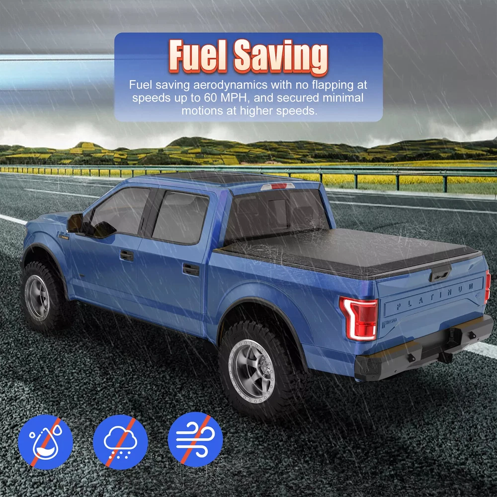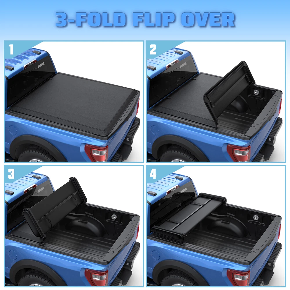 3-Fold 5.7/5.8FT Truck Bed Tonneau Cover For 2009-2025 Dodge Ram 1500 Waterproof