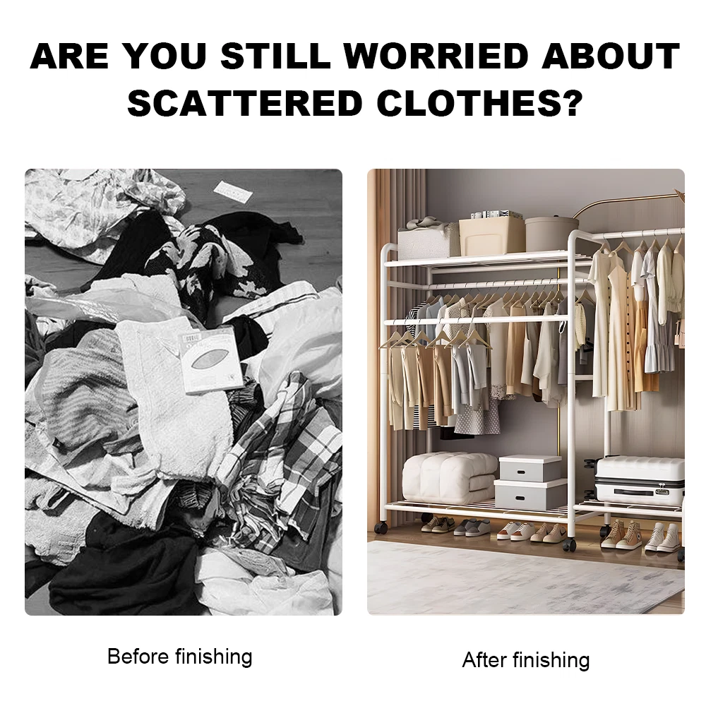 About this item VERSATILE ALL-IN-ONE GARMENT RACK - Tired of cluttered clothes? Let newly designed clothing racks for hanging clothes be your ultimate solution! With 3 hanging rods, 3 shelves, and a coat rack with 4 hooks, everything finally has its place. Hang your jacket as soon as you walk in, toss your hat or scarf on the hooks, and store your shoes or bags neatly on the shelves. Declutter your space effortlessly and keep your room organized with everything right where you need it! MAX LOAD 620 LBS - DURABLE AND HEAVY DUTY! This metal clothes rack offers waterproof, rust-proof, corrosion-resistant, and scratch-resistant performance. Expertly connected with sturdy screws, High quality metal tube ensure exceptional stability, supporting up to 620 lbs of weight. The side support rods further boost stability while providing extra storage options, maximizing your organization space efficiently. EFFORTLESS MOBILITY, MAXIMUM SAFETY! Thanks to the 360° swivel wheels, moving your portable clothes rack is a simple task. With just a gentle push, you can effortlessly transport your rack to any spot you desire. These wheels are equipped with a locking feature, allowing you to securely park the closet rack in a stable position whenever needed. MULTI-FUNCTIONAL & COMPACT! This clothes racks for hanging clothes is the ultimate space-saving solution for your home! Its versatile design offers hanging space for clothes, plus shelves for shoes, bags, and others. Ideal for homes with limited space, it fits seamlessly into any room—whether it's your bedroom, laundry room, closet, porch, living room, or even office. Specifications: Overall dimensions:150*37*165cm /59"x15"x65" Material: High-quality iron pipe Color: Black/White Payment Delivery details Return Contact us Feedback Payment We only accept the paypal payment methods. All major credit cards are accepted through secure payment processor PayPal.(* If you use e-check on PayPal, delivery may take longer, as we will hold your order until your e-check clear) Delivery details Item will be shipped within 2 business day after confirmed payment. (Not including weekend or public holidays) Please verify your address during checkout. We are not responsible for any wrong or undeliverable addresses. All items will be checked strictly before shipping and it will be shipped to your PayPal address. Estimated delivery time is 1-5 working days (Not including weekend or public holidays) Delivery times may vary particularly during peak periods or unexpected weather conditions. In event of a very unlikely slight delay, your patience would be highly appreciated. We do not provide pick up or local collection service so far. Return We accpet return within 30 Days of dispatch. For exchange buyer MUST return the defective item for 1 to 1 exchange, return cost due to buyer. For free shipping means we paid the shipping fee on your behalf, that fee will be deducted. In case return cause by wrong buy, return postage will be at buyer side also. Please contact us immediately about any your return before shipping back the Once the item has shipped the regular return policy applies. Notifying us ahead of time will help us to ensure that your return is dealt with promptly upon arrival. Contact us We guarantee 100% Buyer Satisfaction. We are increasingly expanding international markets based on high quality products, excellent service, reasonable priceboas and timely delivery. Please contact us at any time for more information.We work hard to make sure EVERY CUSTOMER 100% approvingly. Feedback Very appreciated for your support. I hope you are happy with your purchase. We maintain high standards of excellence and strive for 100% customer satisfaction! Feedback is very important to us. We request that you contact us immediately BEFORE you give us or feedback, so that we can satisfactorily address your concerns. If you have any problem, please feel free to contact us via ebay message, we will reply your email within 24 hours (except weekends and holidays). We will do our best to solve your problem as soon as possible. We appreciate your continued patience and willingness to work with us. Thank you for choosing us and have a great day! Assembly Required No Brand Unbranded Department Adults Features Heavy Duty, Portable, With Rack, With Wheels, Hanging Finish Metallic Item Height 65 in Item Length 59 in Item Weight 12.13 lbs Item Width 15 in Material Metal Mounting Free Standing Original/Reproduction Original Personalized No Required Tools Easy to Install Style Simple Type Clothes Rail MPN Does not apply