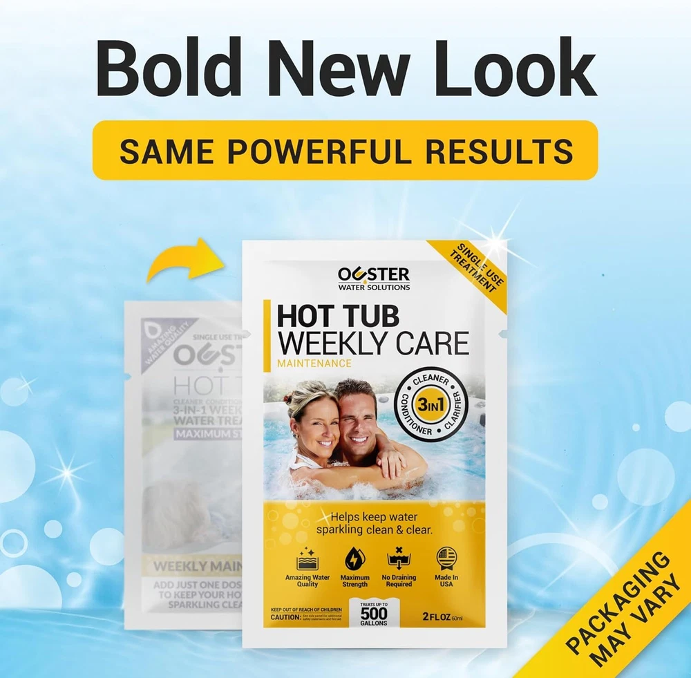 3-IN-1 WATER CARE: Our weekly maintenance treatment includes a combination of hot tub cleaner, conditioner, and clarifier. Specially formulated to deliver sparkling clean and crystal clear water and ensure a soft and silky water feel for your next soak! KEEPS YOUR HOT TUB FEELING FRESH: Helps prevent gunk and buildup from accumulating in your plumbing system, jet lines and filter. Use weekly to protect all your hot tub parts and extend the life of your spa. EASY TO USE: Simply add 2oz of 3-IN-1 Weekly Care for every 500 gallons of water and turn jets on high for 30 seconds. Repeat Ouster 3-in-1 Weekly Care every 7 days thereafter. For best results, use together with Ouster Hot Tub Restoration to deep clean hot tub plumbing, jets, and tubes. WORKS ON ALL SPA TYPES: Formulated for today's premium acrylic hot tubs, inflatable hot tubs and jetted portable spas. QUALITY YOU CAN TRUST: Ouster spa and hot tub chemicals are made of the highest quality ingredients and proudly manufactured in the USA. Give our 3-IN-1 a go and your spa will thank you! Product Description The video showcases the product in use. The video guides you through product setup. The video compares multiple products. The video shows the product being unpacked. Can I safely add this product to my hot tub without risking discoloration? This product is free from bleach and harsh ingredients that could cause fading or discoloration. Where is this product made? This product is produced and packaged within the United States. Is this suitable for use in both inflatable and saltwater hot tubs? Hot Tub Weekly Care is compatible with all types of hot tubs. It's designed to be safe for use with various sanitizers, including chlorine, bromine, mineral, saltwater, and biguanide systems. Should Hot Tub Weekly Care be used as a replacement for my usual sanitizers like chlorine or bromine? No, Hot Tub Weekly Care serves as a water clarifier and conditioner and should not replace your sanitizer. It aids in maintaining clear water but does not have sanitizing properties. You should continue using your regular sanitizer. What is the difference between Hot Tub Weekly Care and Hot Tub Power Purge? Hot Tub Power Purge flushes built-up gunk hiding in your hot tub’s plumbing system. This treatment should be used once every 3-4 months. Hot Tub Weekly Care helps keep your water clear in between Purge treatments. Just one dose needed every 7 days. Shop Ouster Products Add to Cart Add to Cart Add to Cart Add to Cart Add to Cart Add to Cart Customer Reviews 4.3 out of 5 stars 4,326 4.5 out of 5 stars 745 4.3 out of 5 stars 418 4.0 out of 5 stars 31 4.8 out of 5 stars 27 4.4 out of 5 stars 851 Price $24.97 $ 24 . 97 $24.97 $ 24 . 97 $59.97 $ 59 . 97 $17.95 $ 17 . 95 $19.97 $ 19 . 97 $21.99 $ 21 . 99 Size Options 8oz, 16oz, 32oz 2oz, 8oz Kit 32oz 16oz 8oz Use Weekly Care & Maintenance Deep Clean for Plumbing & Jets Complete Kit for Hot Tub Deep Clean for Filters Cleaner for Inside Surfaces Deep Clean for Plumbing & Jets Frequency Every 7 Days Every 3-4 Months Weekly & Quarterly Every 3-4 Months As Needed Every 30 Days Fast Acting & Maximum Strength ✔ ✔ ✔ ✔ ✔ ✔ Works on All Tub Types ✔ ✔ ✔ ✔ ✔ ✔ Professional Grade Formula ✔ ✔ ✔ ✔ ✔ ✔ Extends Spa Life ✔ ✔ ✔ ✔ ✔ ✔ Made in USA USA USA USA USA USA