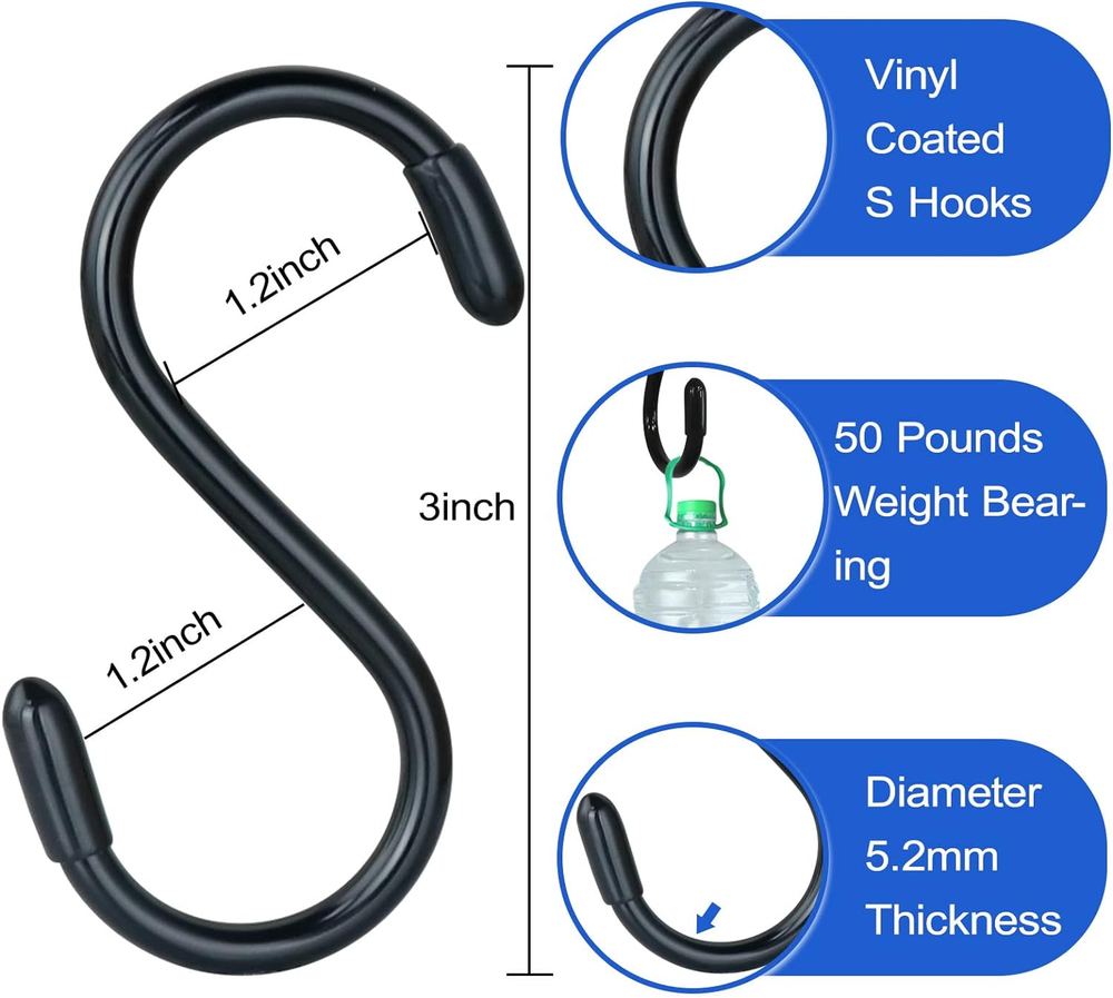 Store New Arrivals Add to Favorite View Feedback 3 Inch Vinyl Coated S Hook,S Hooks for Hanging Plants ,10 Pack Non Slip Heavy Duty S Hooks ,Small Rubber Coated Steel Metal Black Closet S Hook for Hanging Jeans Plants Jewelry Pot Pan Cups Towels Description Style Non Slip Theme Home Organization & Decoration Batteries Included? No Batteries Required? No Finish Powder Coated Brand DINGEE Material Vinyle,Rubber,Steel Maximum Weight Recommendation 3 Pounds Number of Hooks 10 Maximum Weight Capacity 3 Pounds Finish Type Powder Coated Package Dimensions 5.35 x 5.28 x 0.71 inches Manufacturer DINGEE Item Package Quantity 10 Item Weight 1 pounds Special Features Heavy Duty, Non Slip Special Feature Heavy Duty, Non Slip Weight Limit 3 Pounds Part Number ZQA-461 Mounting Type Door Mount Color Black Recommended Uses For Product Wall, Closet, Kitchen, Bathroom, Garage, Garden, Hat, Holder, Jewelry, Key Holder, Towel, Purse, Bathroom, Indoor, Utility, Decoration Rubber Coated Non-Slip Hooks:Our heavy duty s hook surface are coated with vinyl rubber and two rubber stopper on the end,which is rust-resistant, slipping and resist falling , you don't need to worry that these hooks would scratch your clothes or purse,scarf, jeans among using, and these closet s hooks would not Fall off when you remove the item. Premium Quality Material: Our small vinyl coated heavy duty s hooks are made of thick metal steel with vinyl coated, which is strong to hang heavier items and not easy to deformed.These practical and portable hooks are widely applied in closet ,kitchen, bathroom, storage room, workshop, office, and garage.garden,indoor and outdoor. Black Rubber Coated Hooks Size:These closet s hooks measure 3 inch in length, the two side opening is 1.2 inch. Widely Application: These closet s hooks are great for hanging your plants ,clothes, jeans, scarves, hats, belts, jewelry,purse and more; you could also use heavy duty s hooks for hanging pots,pans,spatulas, and other kitchen utensil on your pot rack, rails or shelves.also useful to hang toiletries, towels and robes in the bathroom, and organize tools in the garage, and hang plants in your garden. Easy to Use:These hanging hooks it doesn’t need to use tools,nails, screws, you can hang them on racks, bars, shelves,rod and place in closet,kitchen,garage,bathroom,garden and etc,large vinyl coated s hooks can hang lots of item to help you save more space,are a simple and friendly solution Product Description 3.0 inch Vinyl Coated Hooks for hanging these heavy duty s hook surface are coated with vinyl rubber and two rubber stopper on the end,which is rust-resistant, slipping and resist falling , you don't need to worry that these hooks would scratch your clothes or purse,scarf, jeans among using closet hooks for hanging clothes these rubber coated closet hooks for wall are suitable for most rods and have a smooth surface and with rubber stopper ends that won't hurt your hand or your stuff. You can hang your bags, keys, pants, scarfs, necklaces, bracelets and ties, make your living room tidy, saving space. Small Rubber Coated Steel Metal Black Closet S Hooks for Hanging Jeans Plants Jewelry Pot Pan Cups Towels S Hooks for Hanging Kitchen Pots and Pans, Plants, Coffee Cups, Coats, Bags, Towels,also useful to hang toiletries, towels and robes in the bathroom, and organize tools in the garage, and hang plants in your garden and Lights, Indoor and Outdoor Decorative closet hooks hanger hooks kitche hooks for hanging ABOUT US We offer the best prices around on high quality products. Our E-store includes media such as books, movies, music and games while offering electronics, toys, sporting apparel, clothing, tools, general home, garden items and more. SHIPPING We are always working hard to ensure your package arrives as soon as possible. Please understand that some factors like weather, high postal traffic, and the performance of shipping companies are outside of our control. We offer free shipping to the lower 48 states and ship within 2 business days of payment, usually sooner. We do not accept P.O. Boxes. Please provide a physical address. RETURNS We offer a 30-Day Return Policy on items which you are not completely satisfied with. You have the option for a full-refund or an exchange of the item. No returns are available on items shipped outside of the USA. PAYMENT We accept PayPal. CONTACT US This page content is yet to come Please ad us to your favorite seller and visit again later Thank You