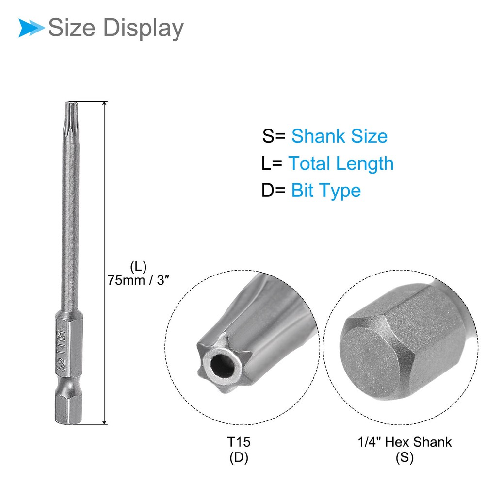 Document Attributes: *Screwdriver Bit Type: T15*Total Length: 75mm / 3 inch*Surface Treatment: Sandblasted*Material: S2What Is Included:* 10 Pieces x Torx Head Screwdriver BitsApplications & Features: -The screwdriver bit is made of S2 steel, which is wear-resistant and impact-resistant, with a hardness of up to 58HRC, and has been sandblasted and surface treated for durability.-These torx screwdriver bits feature a magnetic design that allows them to easily attract and hold screws. This feature ensures convenient installation by securely holding the screw in place before and after fastening, preventing accidental drops or misalignment.Useful Tips:-When using the torx head screwdriver bit, ensure a proper fit with the screw head to prevent stripping or damage. Apply appropriate pressure and torque to avoid over-tightening or under-tightening. Inspect the bit regularly for any signs of wear or deformation and replace if necessary. T15 Torx Head Screwdriver Bit, 3" Long 1/4 Inch Hex Shank Magnetic Drill Driver Attributes: *Screwdriver Bit Type: T15 *Total Length: 75mm / 3 inch *Surface Treatment: Sandblasted *Material: S2 What Is Included: * 10 Pieces x Torx Head Screwdriver Bits Applications & Features: -The screwdriver bit is made of S2 steel, which is wear-resistant and impact-resistant, with a hardness of up to 58HRC, and has been sandblasted and surface treated for durability. -These torx screwdriver bits feature a magnetic design that allows them to easily attract and hold screws. This feature ensures convenient installation by securely holding the screw in place before and after fastening, preventing accidental drops or misalignment. Useful Tips: -When using the torx head screwdriver bit, ensure a proper fit with the screw head to prevent stripping or damage. Apply appropriate pressure and torque to avoid over-tightening or under-tightening. Inspect the bit regularly for any signs of wear or deformation and replace if necessary. Hot Item Payment 1.We accept eBay payment . 2.Payment must be received within 7 business days of auction closing. Shipping 1.We ship to your eBay or Paypal address. Please make sure your eBay and Paypal address is correct before you pay. 2.Items will be shipped within 1-3 business day when we received payment. 3.Delivery time depends on destination and other factors. Description Policy T15 Torx Head Screwdriver Bit, 3" Long 1/4 Inch Hex Shank Magnetic Drill Driver Attributes: *Screwdriver Bit Type: T15 *Total Length: 75mm / 3 inch *Surface Treatment: Sandblasted *Material: S2 What Is Included: * 10 Pieces x Torx Head Screwdriver Bits Applications & Features: -The screwdriver bit is made of S2 steel, which is wear-resistant and impact-resistant, with a hardness of up to 58HRC, and has been sandblasted and surface treated for durability. -These torx screwdriver bits feature a magnetic design that allows them to easily attract and hold screws. This feature ensures convenient installation by securely holding the screw in place before and after fastening, preventing accidental drops or misalignment. Useful Tips: -When using the torx head screwdriver bit, ensure a proper fit with the screw head to prevent stripping or damage. Apply appropriate pressure and torque to avoid over-tightening or under-tightening. Inspect the bit regularly for any signs of wear or deformation and replace if necessary. Hot Item Payment 1.We accept eBay payment . 2.Payment must be received within 7 business days of auction closing. Shipping 1.We ship to your eBay or Paypal address. Please make sure your eBay and Paypal address is correct before you pay. 2.Items will be shipped within 1-3 business day when we received payment. 3.Delivery time depends on destination and other factors.
